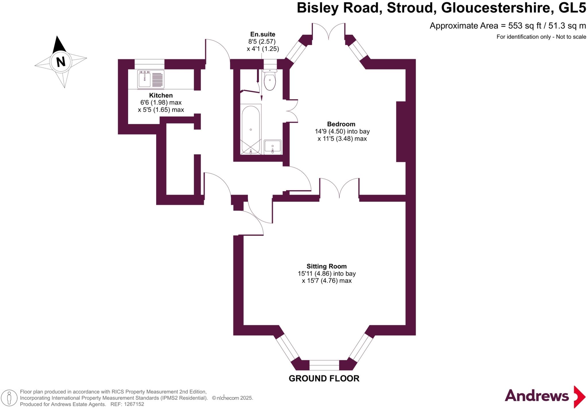 The property is a 2-bedroom apartment located on Bisley Road in Stroud, Gloucestershire.