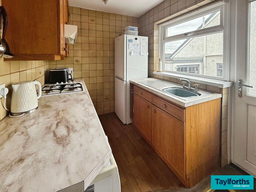 This is a two-bedroom semi-detached bungalow located on Ambleside Avenue in Barnoldswick. The property is in a residential area with access to local schools and transportation. The interior is in reasonable condition, although the kitchen would benefit from modernization. The property features a paved garden area. The listing price is £210,000, which is slightly above the average for the area, but the price per square foot is competitive. The property is a traditional build and would make a good home for a small family or retired couple.