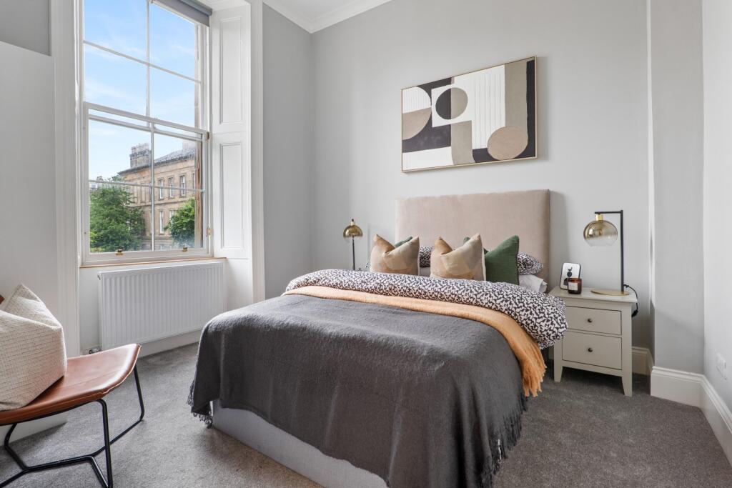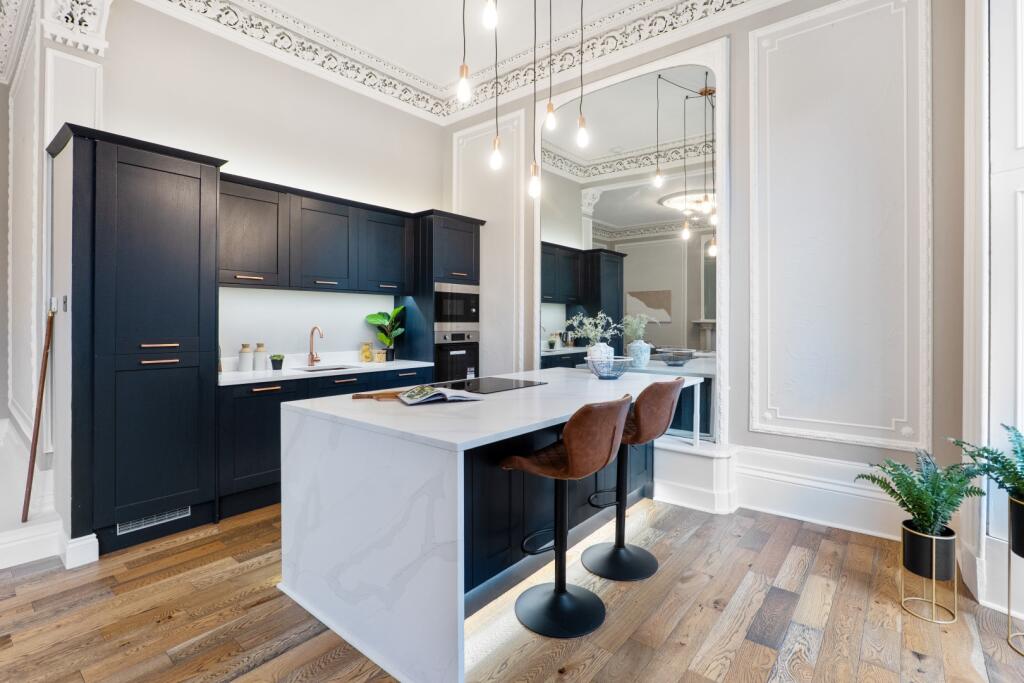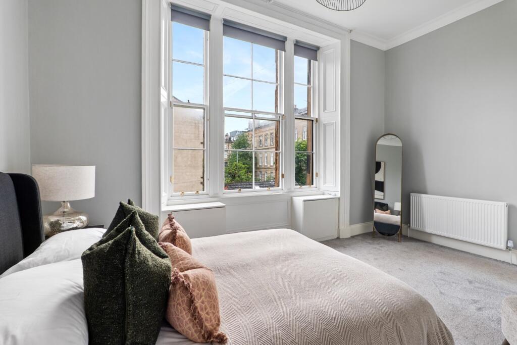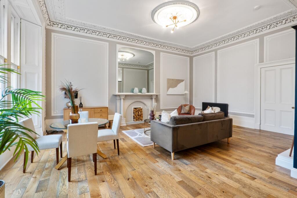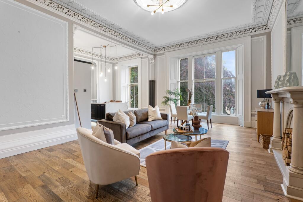 A striking and meticulously upgraded first floor drawing room conversion in the beautiful, leafy Botanics district, boasting a plethora of period features throughout.