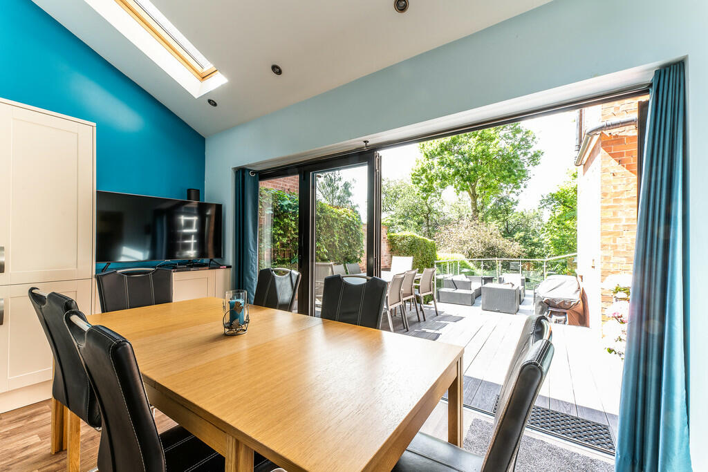 This six-bedroom, three-bathroom detached house located on Lucknow Drive in Mapperley Park, Nottingham, presents a compelling opportunity for a discerning buyer. The property boasts a substantial footprint of 4,262.51 square feet, featuring tastefully designed and well-maintained interiors and an impressive outdoor space. The home appears recently renovated or updated, with a modern kitchen and bathrooms. The images reveal a spacious living area, a large dining room, and what appears to be a separate office. The garden is a particular highlight, offering ample space and privacy.