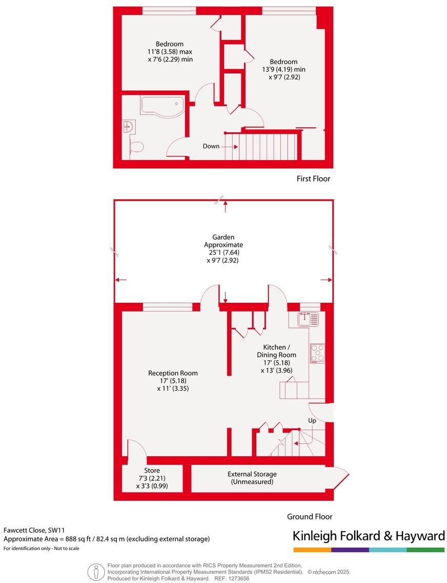 A well proportioned two bedroom split-level purpose built flat with large external storage cupboard, positioned on a quiet residential street ideally located for Clapham Junction.