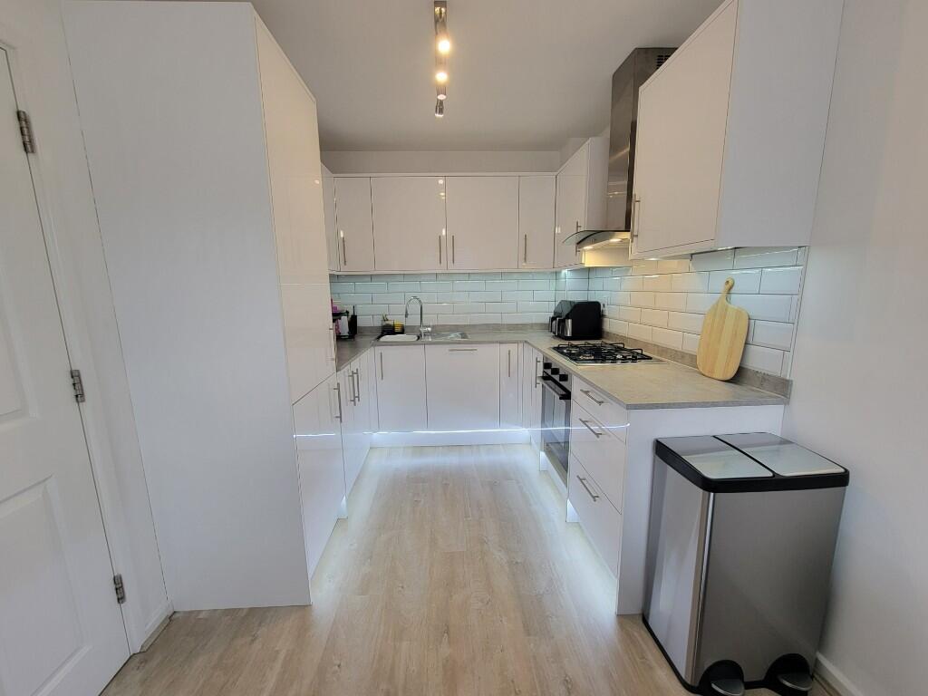 This is a well-presented terraced property in Great Blakenham, Ipswich. The house offers four bedrooms and two bathrooms, making it suitable for families. The interior is in good condition, with a modern kitchen and bathrooms. The property benefits from a garden, which provides outdoor space. The location offers access to local schools and amenities, although the nearest train station is a few kilometers away. Overall, this property represents a good opportunity for potential buyers.