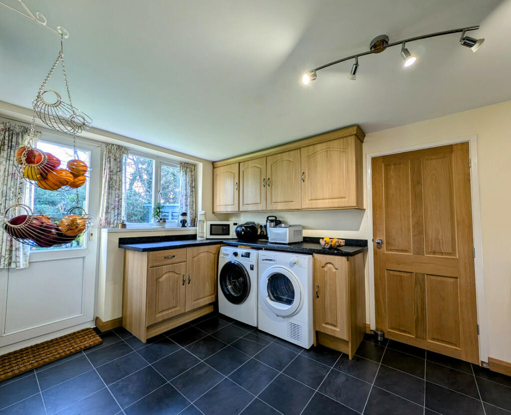 The property features a spacious layout, including multiple living areas and what seems to be a good size kitchen. A double garage provides ample storage space, and the generous garden further enhances the property’s appeal. The photos reveal a well-maintained but slightly dated interior, suggesting that some modernisation may enhance the overall aesthetic appeal and potentially increase the property’s value.