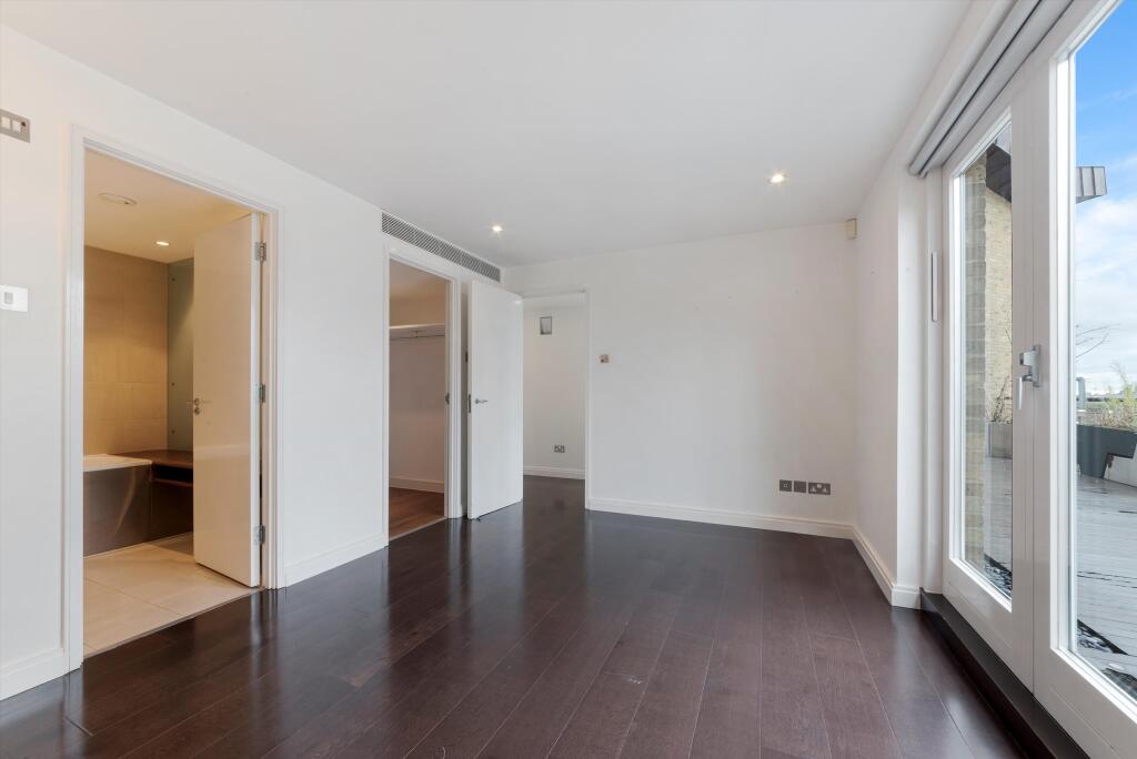 A wonderfully bright three bedroom penthouse apartment with two Riverside terraces and stunning West facing views over the River Thames to the City Skyline. Arranged over the top two floors (9th & 10th), and extending to 1946 sq ft of internal space & 996 sq ft of terrace space, this bes...