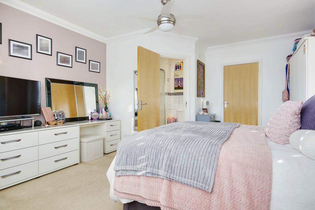 Ground floor Edwardian apartment in St George`s Court, Queens Park West Drive. Own entrance, character living room, modern kitchen, two double bedrooms, en-suite, bathroom, parking, garage (storage), communal area. Sought-after location near golf course & Wessex Way. Vendor suited.