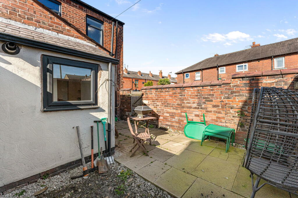 This is a three-bedroom terraced house in Atherton, Manchester. The property benefits from a modern kitchen and bathroom. While Atherton High School is nearby, its Ofsted rating requires improvement. Transport links are adequate with Hag Fold train station within reasonable distance. The property includes a small garden. The asking price of £160,000 seems reasonable, considering the average price in the area and the price per square foot.