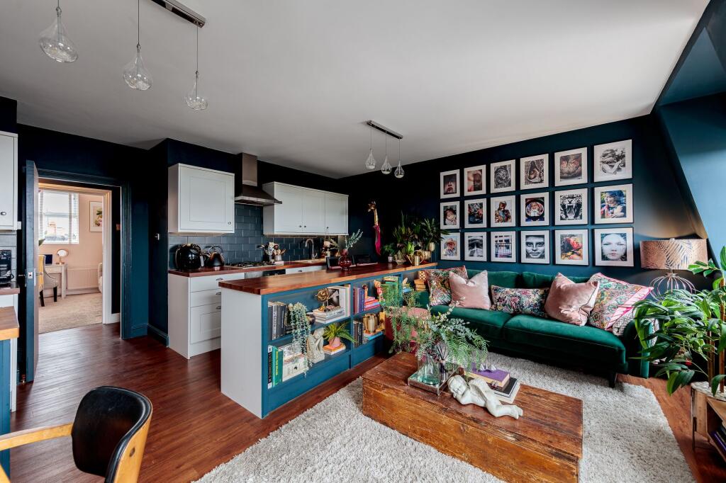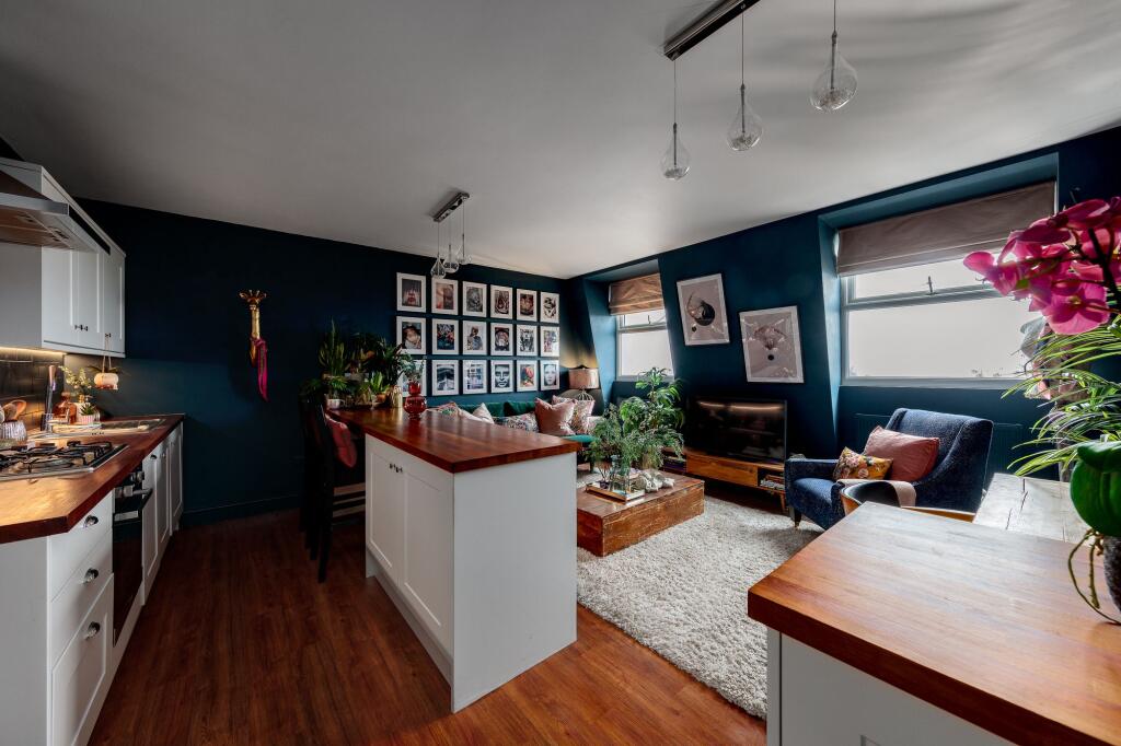 A top-floor one-bedroom flat with the most incredible views over London's skyline, taking in the Shard, the Gherkin, St Paul’s Cathedral and more, right over to Canary Wharf. The flat has a beautifully finished interior and a highly desirable open-plan kitchen living space. Offered with a long le...