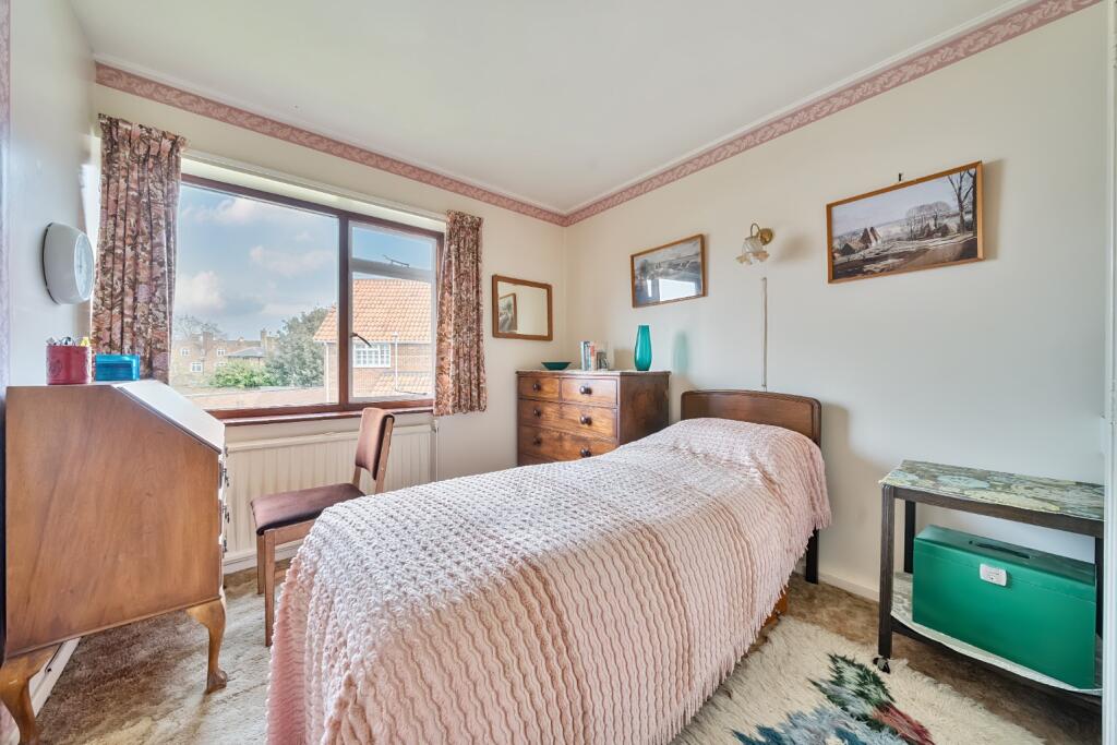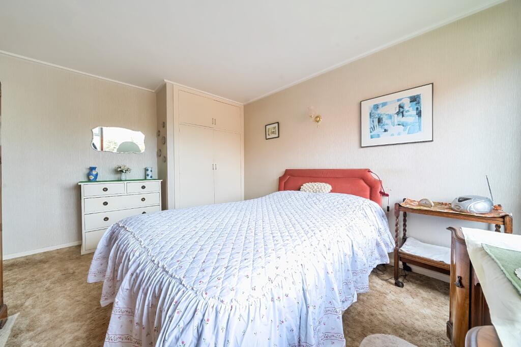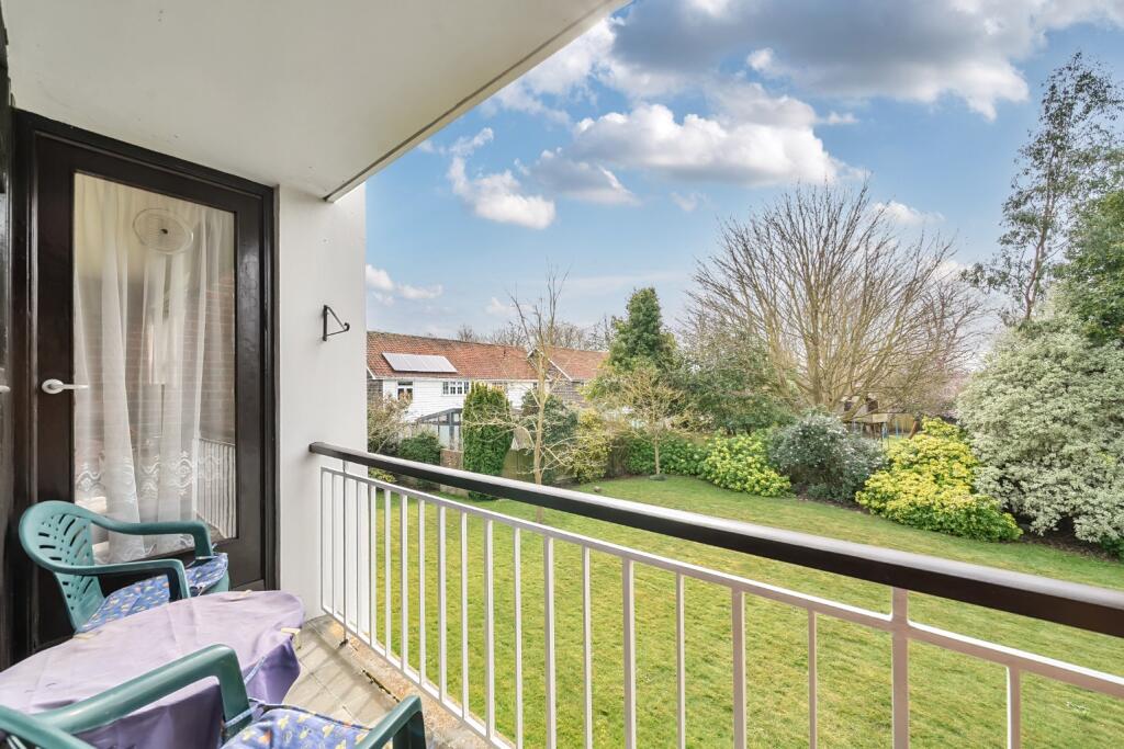 Spacious three bedroom first floor flat boasting parking & garage - Offered with no onward chain - highly convenient for the town's amenities - Bathroom & additional WC - Would benefit from modernisation - Balcony overlooking the communal gardens.