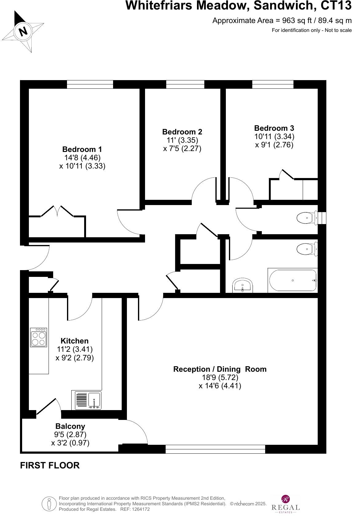 This is a 3-bedroom flat located on Whitefriars Meadow in Sandwich, Kent. The property is listed for £310,000. It is situated in a convenient location, close to local schools and transport links. The flat itself is in reasonable condition, although it would benefit from some modernisation. A key feature is the large communal garden and the property has a balcony. The price appears competitive for the area.