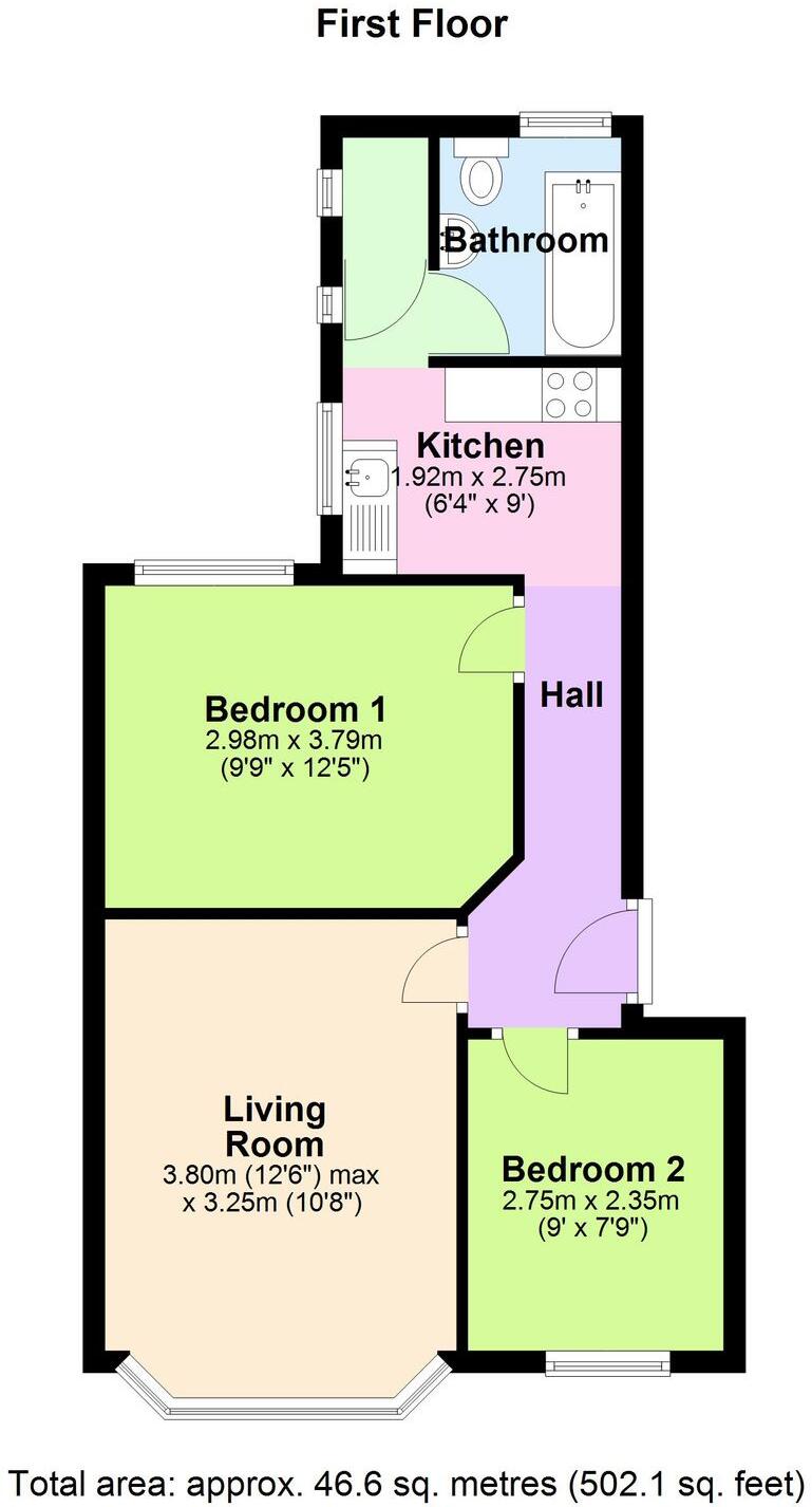 First floor unfurnished flat that has just been redecorated and upgraded internal wall insulation - Private hall - lounge - 2 bedrooms - kitchen - bathroom with shower - City centre proximity.