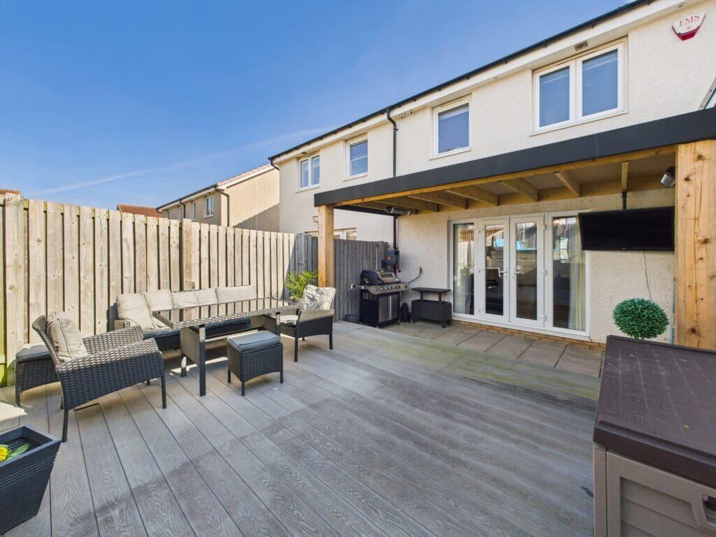 The property is located in Musselburgh, East Lothian, with good transport links to several ScotRail stations. The property is in excellent condition, with a modern and well-maintained interior. A substantial garden with a decked area, hot tub, and outdoor entertaining space is a significant feature. The list price of £270,000 appears to represent good value, considering its condition, features, and garden, although more comparable sales data would refine this assessment.