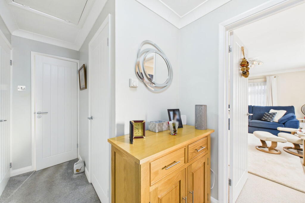 Immaculate two-bedroom detached bungalow in a quiet close, within walking distance of the town centre. Features a modern kitchen, L-shaped lounge/diner, sun room, shower room, neat lawned garden, garage with electric door and parking for two cars. No onward chain, move straight in.