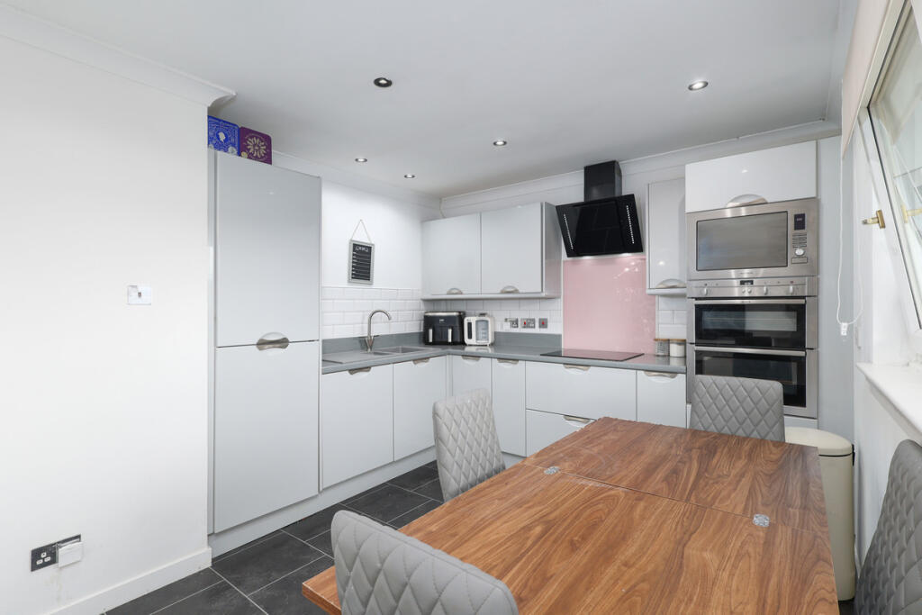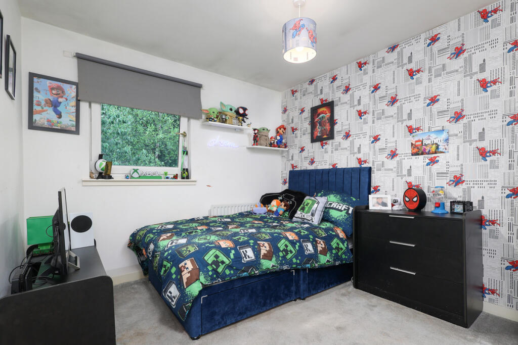 This is a two-bedroom flat in Greenlaw Court, Yoker, Glasgow. The interior is modern and well-maintained, and the property benefits from a communal garden. Transportation links are good, with Yoker train station being within walking distance.