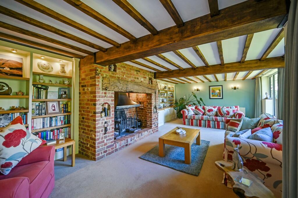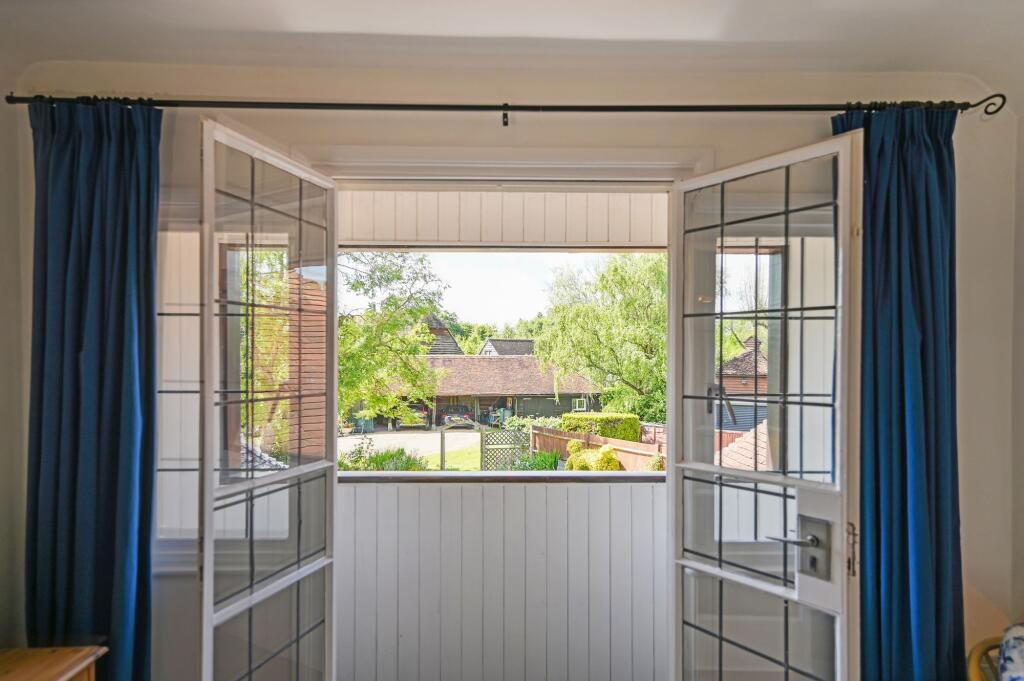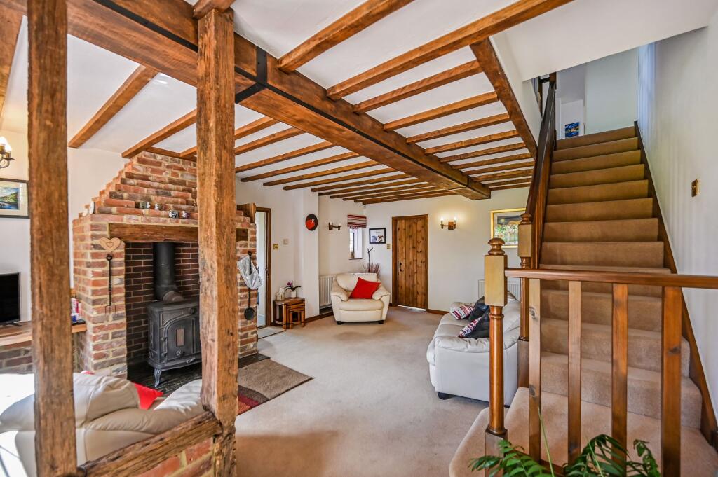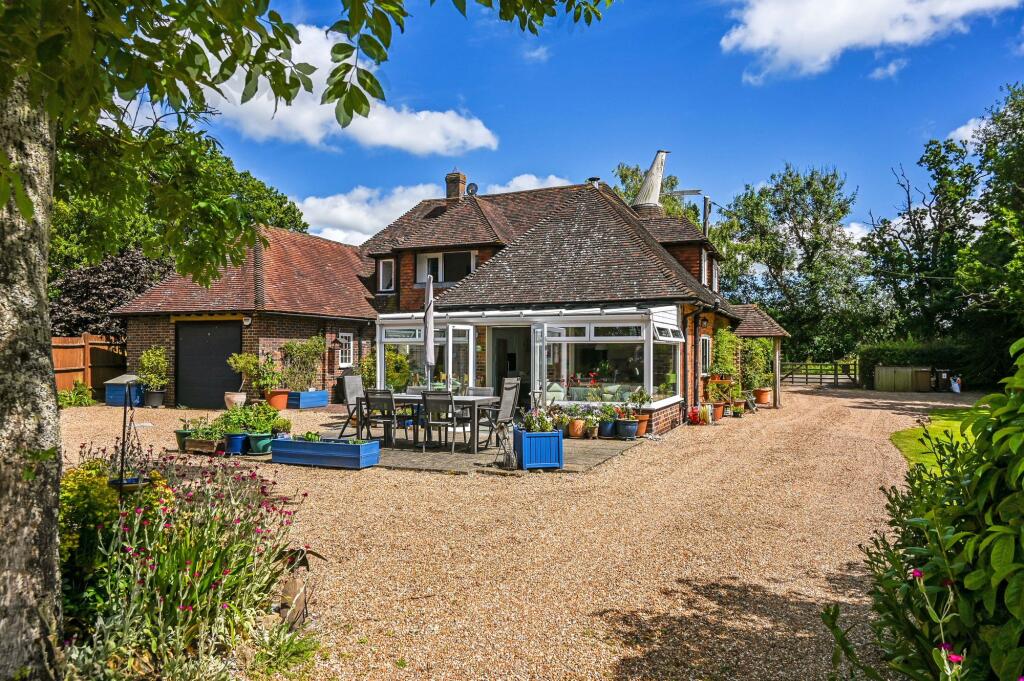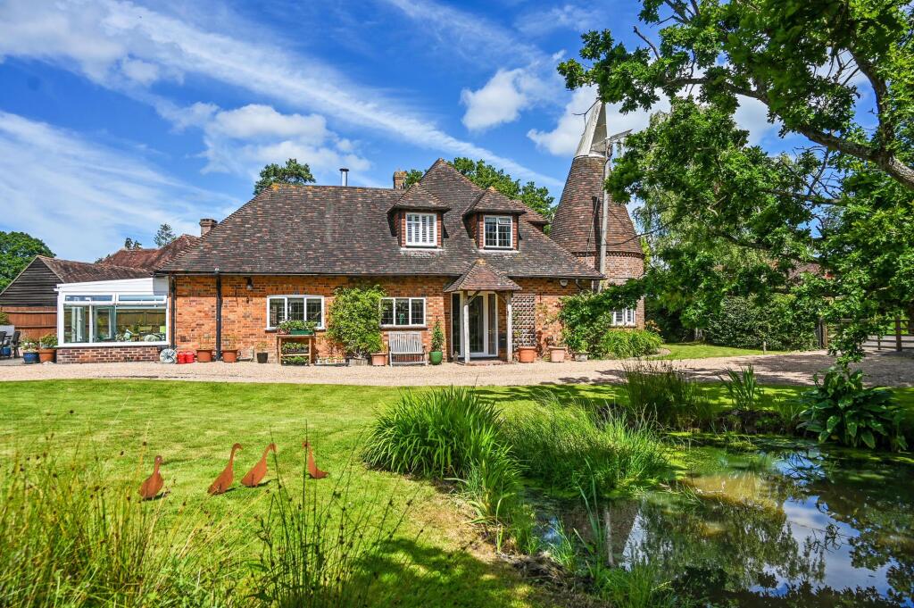 This charming unlisted 4 double bedroom/3 bathroom detached country house with attached small roundel oast, sweeping driveway, garaging, outbuilding and beautiful gardens, is set in the hamlet of Standen on the fringes of the pretty village of Biddenden, close to the towns of Tenterden and Headcorn.
