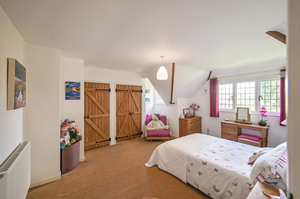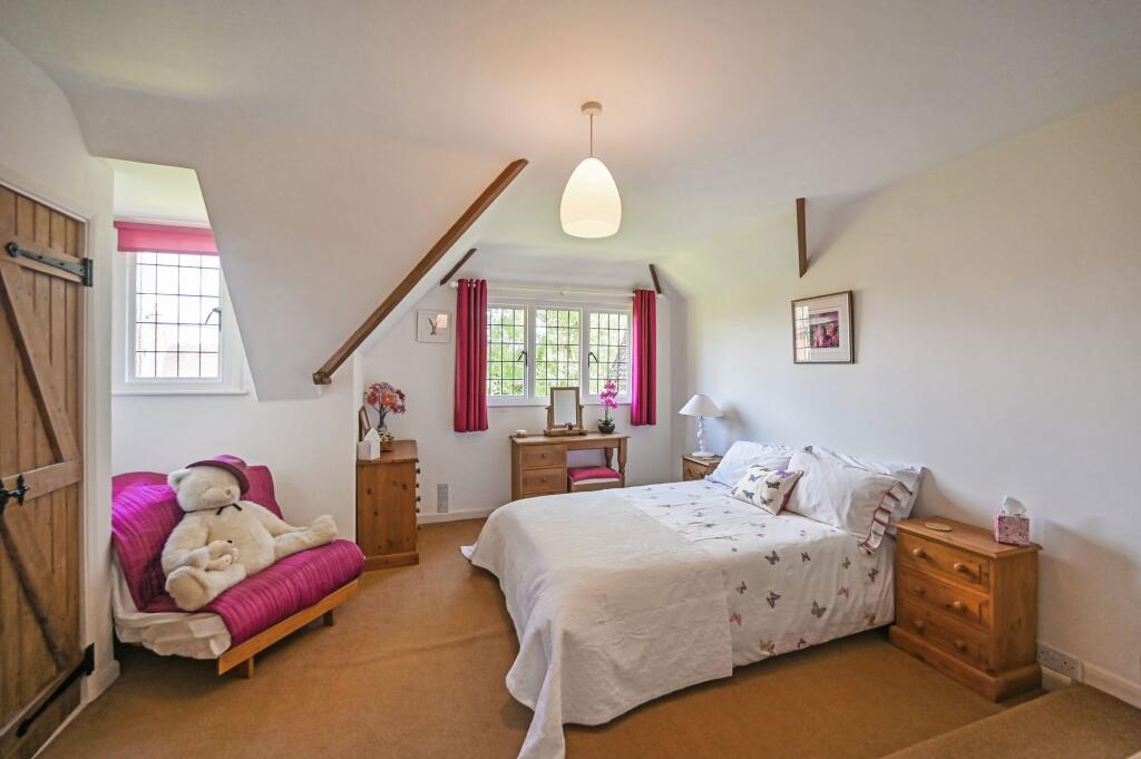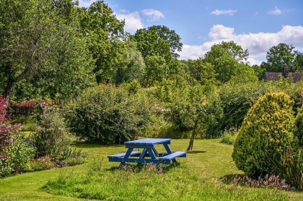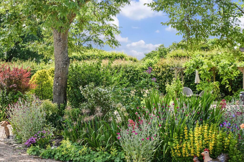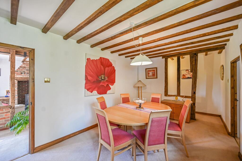 This charming unlisted 4 double bedroom/3 bathroom detached country house with attached small roundel oast, sweeping driveway, garaging, outbuilding and beautiful gardens, is set in the hamlet of Standen on the fringes of the pretty village of Biddenden, close to the towns of Tenterden and Headcorn.