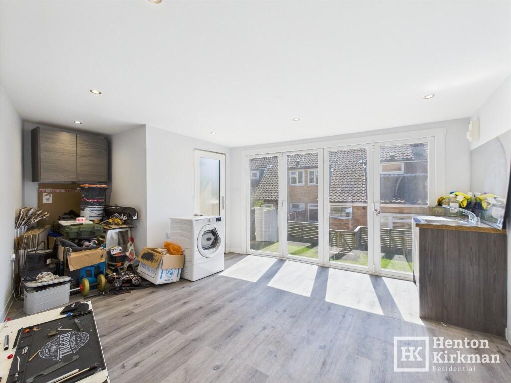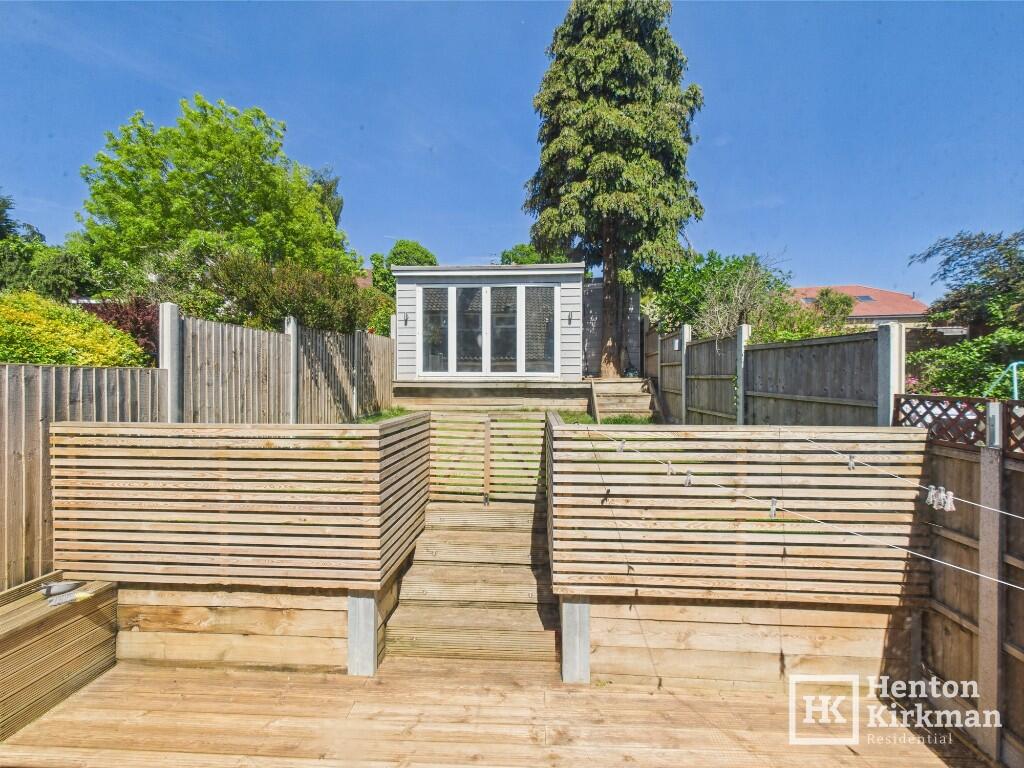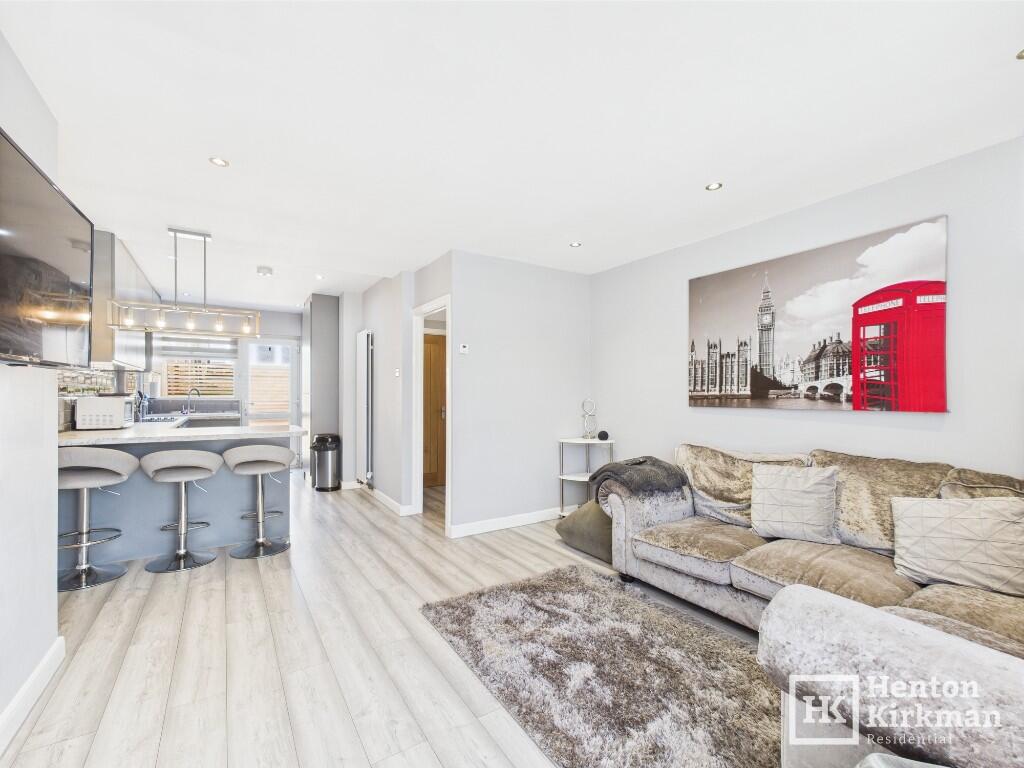 This modernised three-bed home offers stylish open-plan living with a spacious lounge and a kitchen featuring integrated appliances and a breakfast bar, ground Floor WC, modern bathroom. stylish interior, Gas Heating with Combi Boiler, Private Driveway, Decked and Lawn Garden Plus Outbuilding