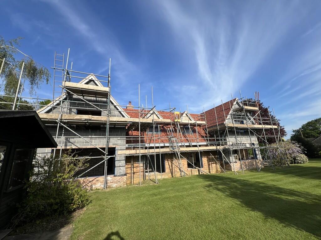 This property is currently under construction. The images show a large detached house undergoing significant renovation and extension work. The exterior shows a new roof and brickwork, while the interior reveals unfinished rooms with exposed brick and timber framing. The property benefits from a sizable garden and open countryside views. The location in Walsham-le-Willows, Suffolk, is desirable, with a good primary school nearby (Walsham-Le-Willows Church Of England Voluntary Controlled Primary School, rated “Good” by Ofsted) and relatively close proximity to Elmswell train station. However, the lack of plot size information in the listing is unusual and may warrant further investigation. The list price of £660,000 is significantly higher than the average house price in the area (£469,105), although the average price per sqft is not directly comparable due to the property being under construction. The higher price is likely justified by the potential value of the completed property, given its size and location. More information on the final specifications (e.g., finished square footage) would be needed to fully assess the price-to-value ratio.