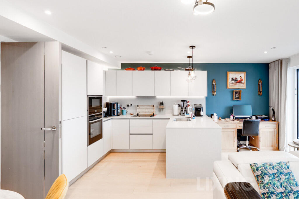 This is a modern two-bedroom apartment located in the Royal Arsenal Riverside development in Woolwich. The property benefits from good transport links and local amenities. The apartment itself is in excellent condition, featuring modern fixtures and fittings, including ensuite bathrooms and a balcony. However, the asking price appears high compared to other properties in the area.