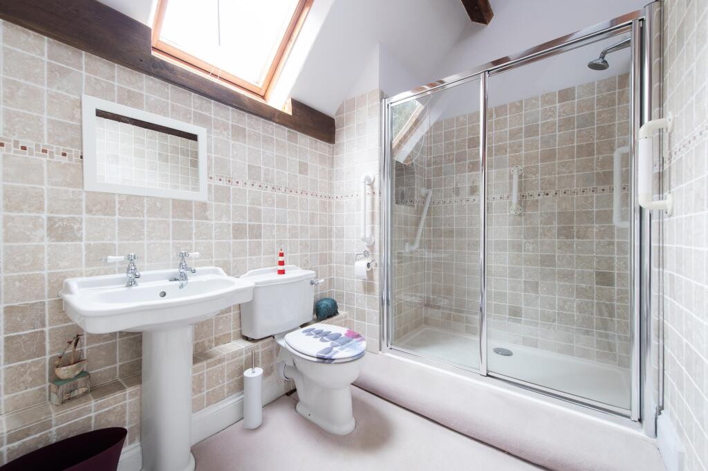 This property is a barn conversion located in Shrewley, Warwickshire. The property is listed with Knight Frank for £795,000. It has 3 bedrooms, 2 bathrooms, and is approximately 1,990 sqft with a plot size of 2,400 sqft. The average house price in the area is £549,850, with an average size of 1,260 sqft and an average price per sqft of £436. This barn conversion is significantly larger than the average property in the area. The property appears to be in good condition. The images show a well-maintained interior with exposed beams and traditional features. The kitchen and bathrooms appear modern and updated. The exterior is also well-maintained and the property benefits from a double garage. The property has a garden, which is a desirable feature. Given the size, condition, and features of the property, along with the desirable location, the asking price of £795,000 seems reasonable in comparison to similar properties in the area, although slightly above average. The location is also a positive factor, with good access to local amenities and transport links. The nearby schools are rated “Good” by Ofsted.