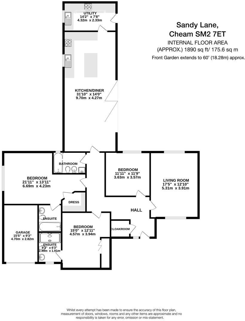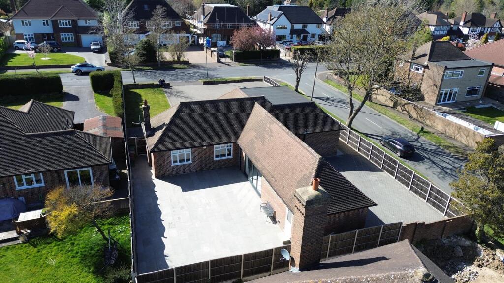 This property is a detached bungalow located in Cheam, Sutton, Surrey. The area is characterized by a mix of housing types and has good transport links with several train stations within a reasonable distance. There are also several schools nearby, including some with good Ofsted ratings. The property itself appears to be in excellent condition, having undergone a recent modernisation. It features a modern kitchen, updated bathrooms, and a spacious layout. The images show a well-maintained property with a substantial garden and ample parking. Given the size, condition, and location, the asking price is in line with comparable properties in the area, although slightly above the average price per square foot. However, the additional features and modern renovations justify the higher price.