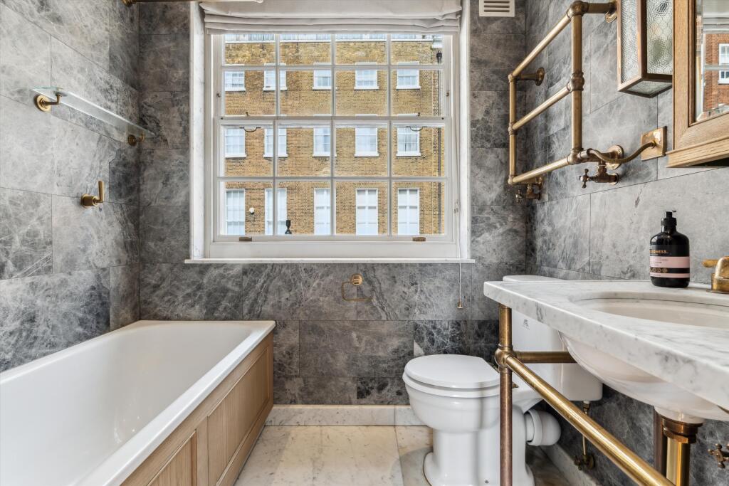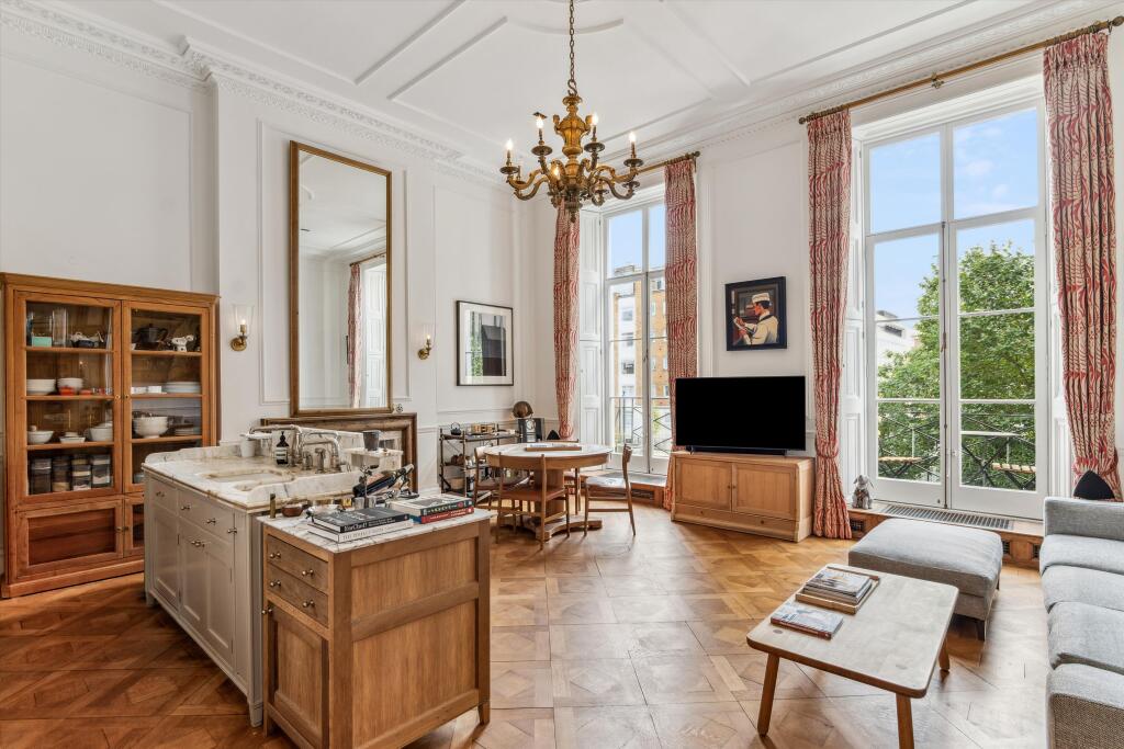Elegant living within a period London building. Spanning 1,395 sq ft, this two bedroom, two bathroom flat features a spacious reception room with striking 4.17m ceilings. Large windows flood the space with natural light, highlighting high-quality parquet flooring and sophisticated fixtures. The ...