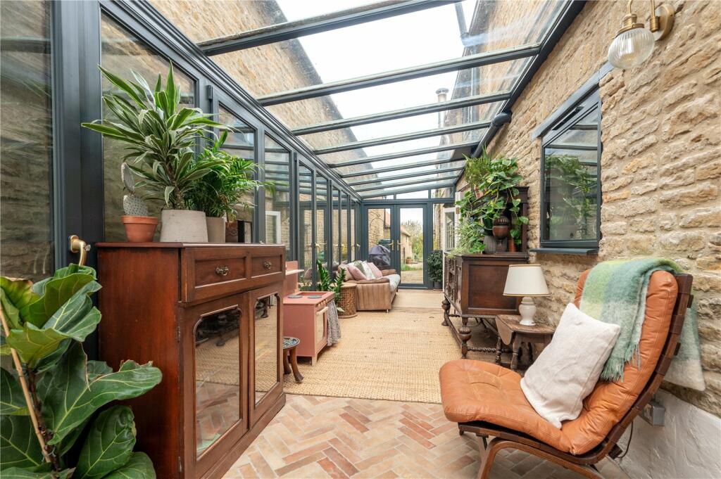 A beautiful five-bedroom family home in the picturesque village of Yarwell, combining character and modern elegance with a country-style kitchen, a stunning garden room, a large garden, and a converted shed ideal for a home office.
