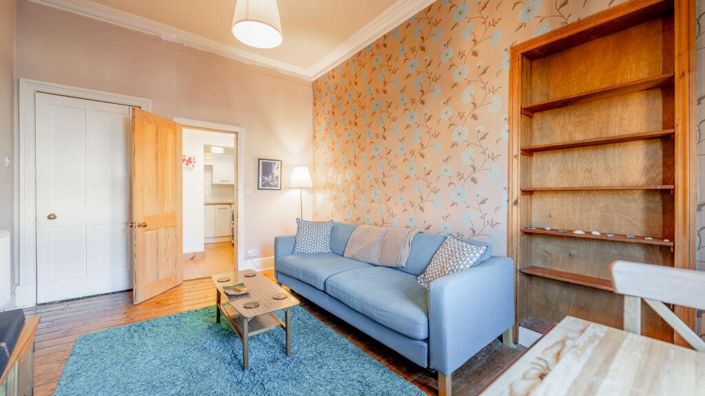 A well-presented, traditional third-floor apartment set within a handsome red sandstone tenement building.