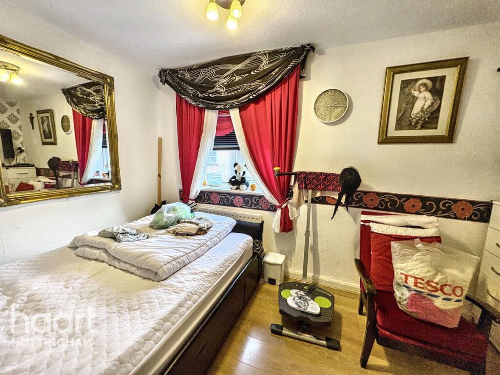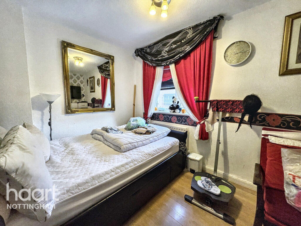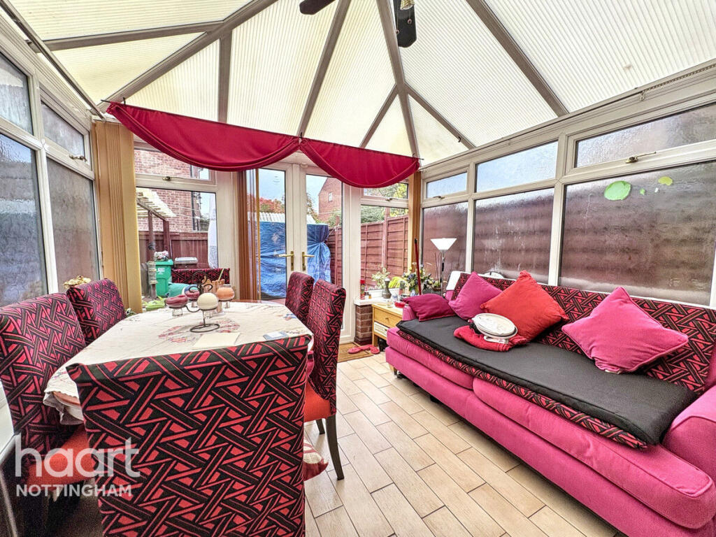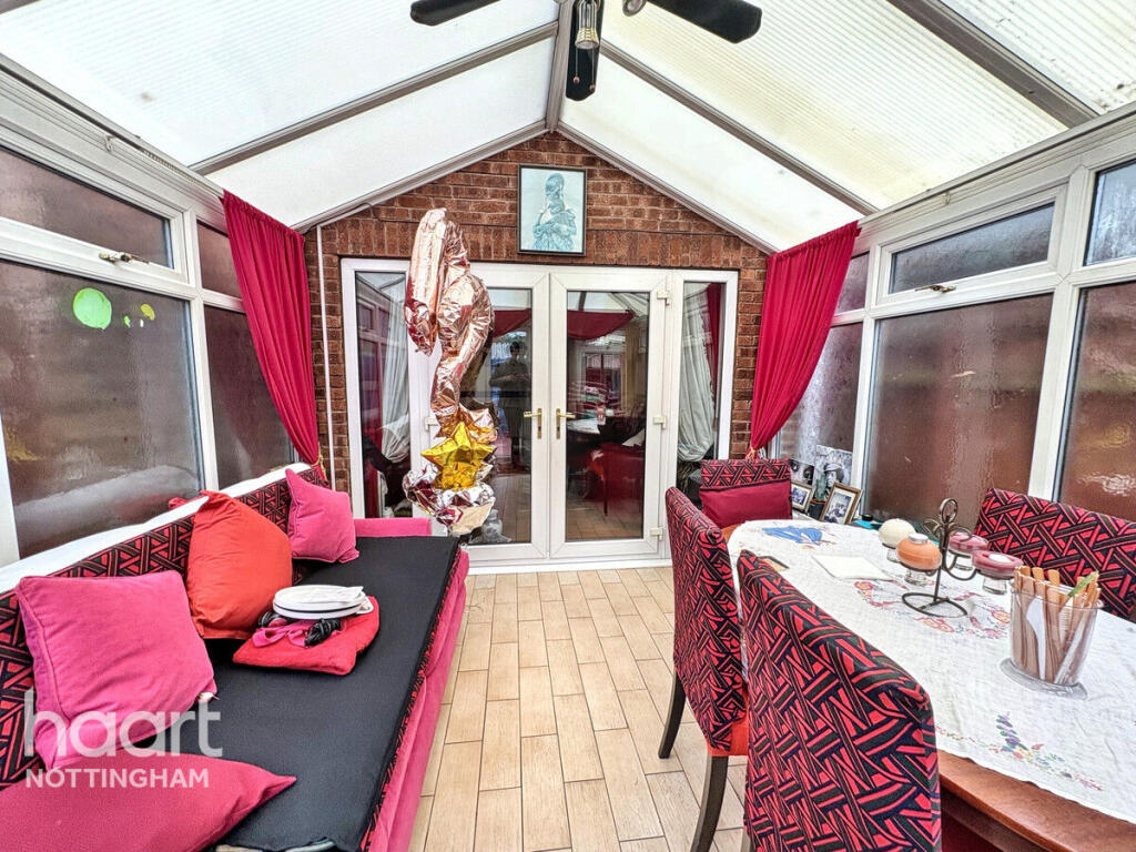 This is a two-bedroom terraced house located in The Meadows, Nottingham. The property is within a reasonable distance of local schools and the city centre. The house has a garden and a conservatory. While the property appears structurally sound, it would benefit from modernisation, particularly in the bathroom and with some of the interior decor. The asking price is slightly above the average for the area, reflecting the potential for improvement and the inclusion of a conservatory.