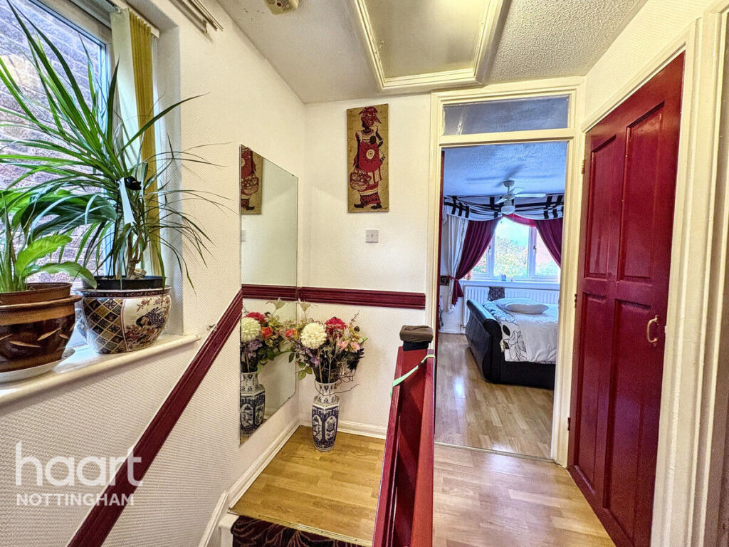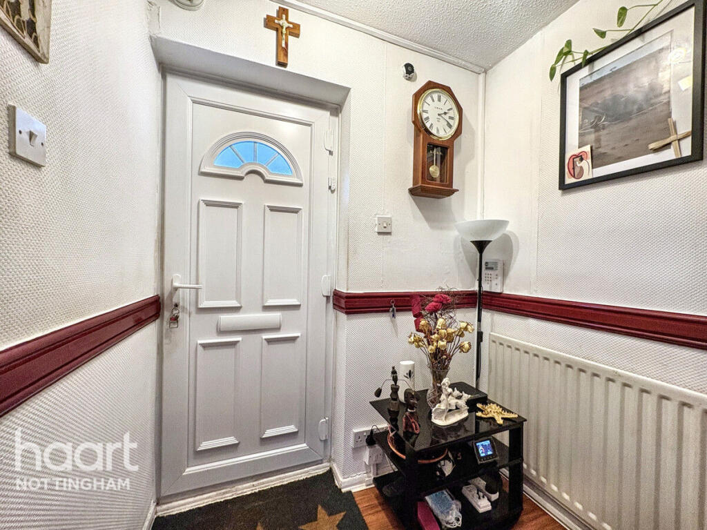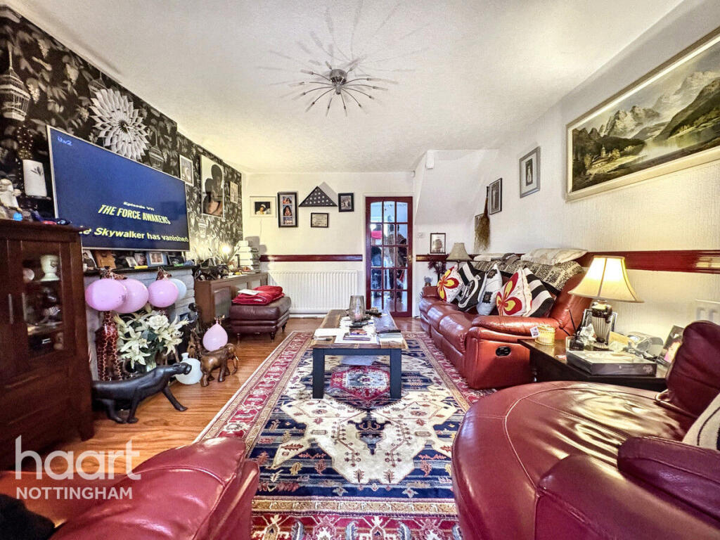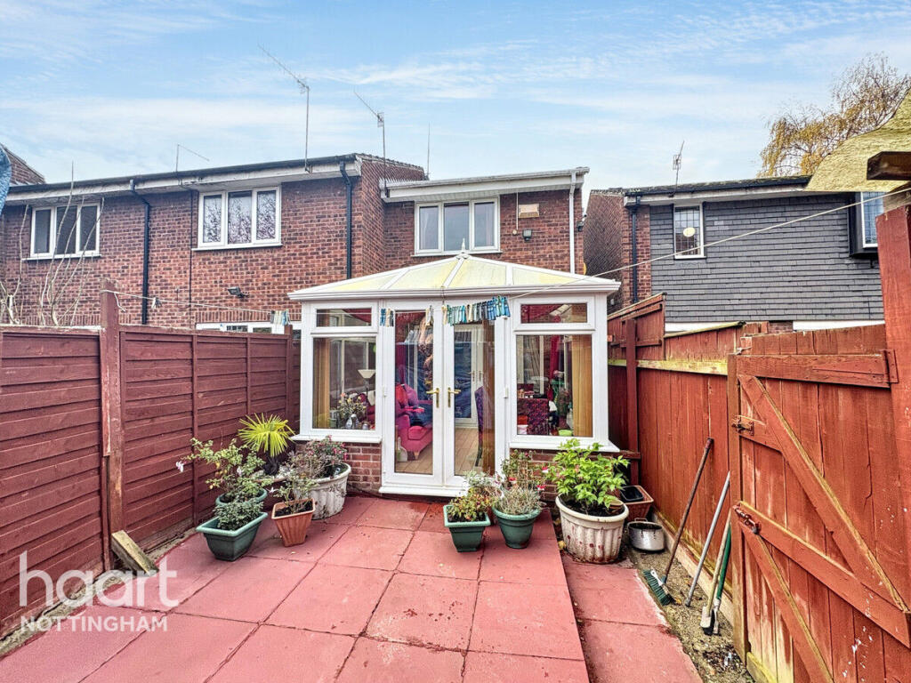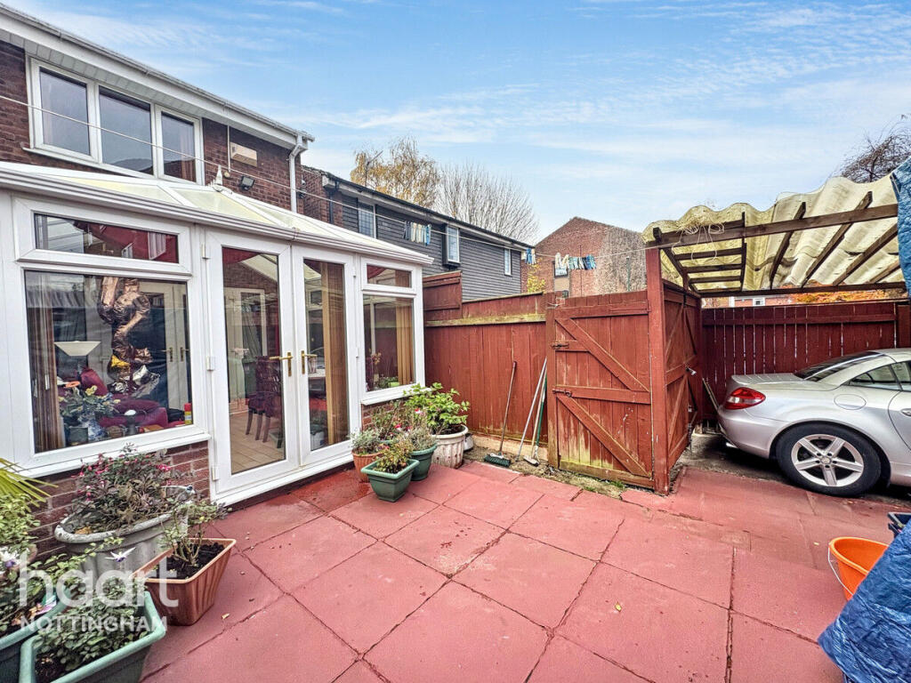 This is a two-bedroom terraced house located in The Meadows, Nottingham. The property is within a reasonable distance of local schools and the city centre. The house has a garden and a conservatory. While the property appears structurally sound, it would benefit from modernisation, particularly in the bathroom and with some of the interior decor. The asking price is slightly above the average for the area, reflecting the potential for improvement and the inclusion of a conservatory.