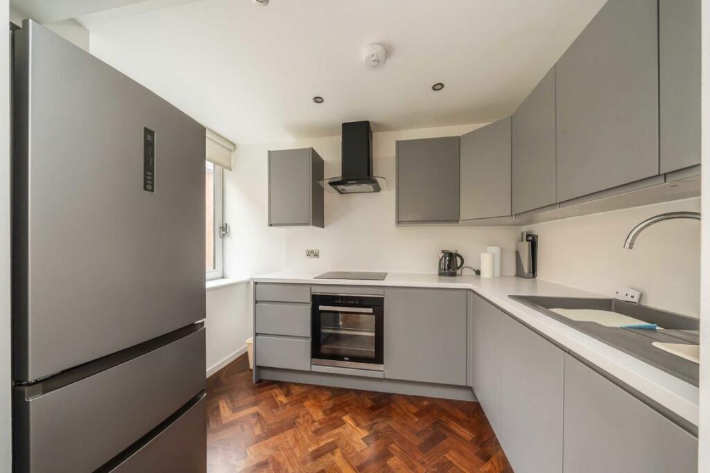 This is a one-bedroom flat located in a prime location in Holborn, London. The property benefits from its central location, offering easy access to transportation, schools, and local amenities. The flat appears to be in generally good condition, with a modern kitchen and bathroom. However, it lacks private outdoor space. The price seems reasonable for the area, but the lack of square footage data makes it difficult to assess the price per square foot accurately.