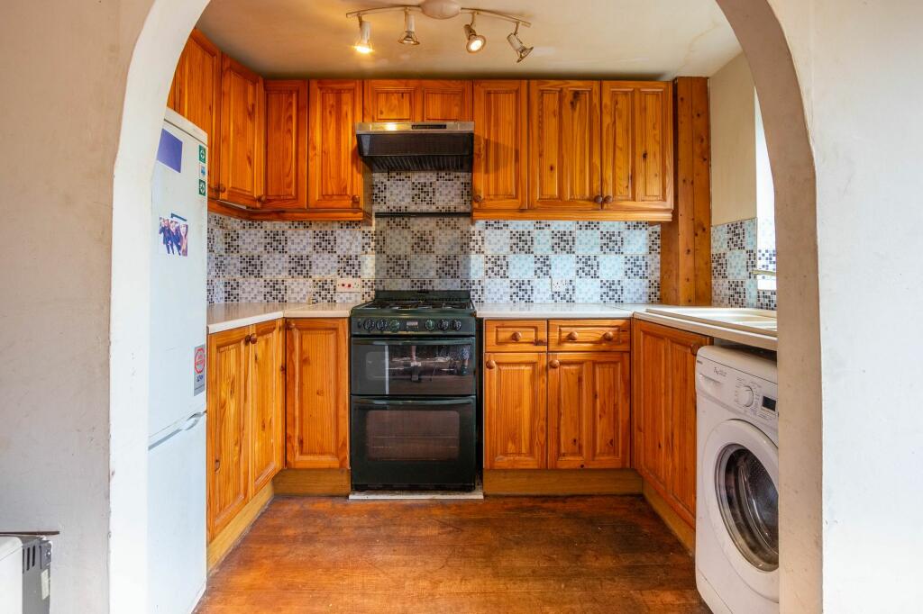 The interior of the house reveals a need for modernisation. The kitchen and bathroom are particularly in need of updating. The current style is outdated, but the structure appears sound. The flooring and walls show signs of wear and tear, suggesting a refurbishment would significantly enhance the property’s appeal and market value.