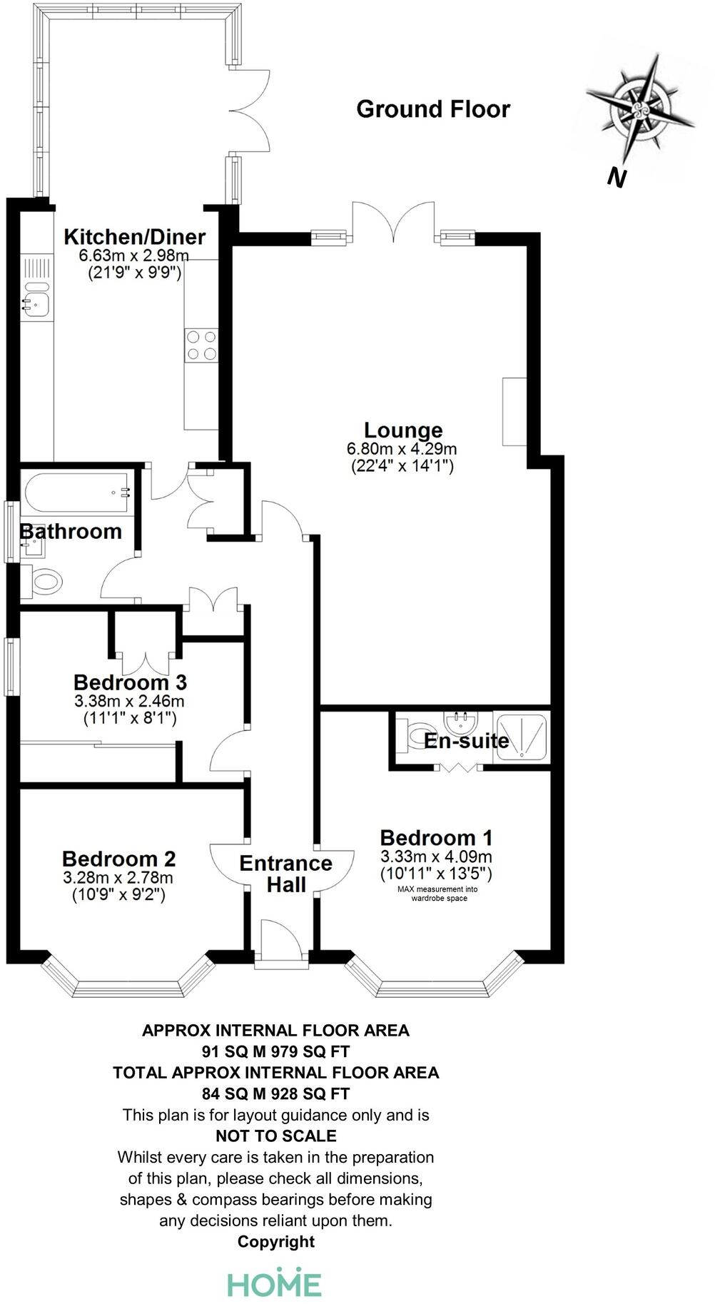 A three bedroom semi detached bungalow, EN-SUITE SHOWER ROOM, popular location close to shops, approx. 100' REAR GARDEN