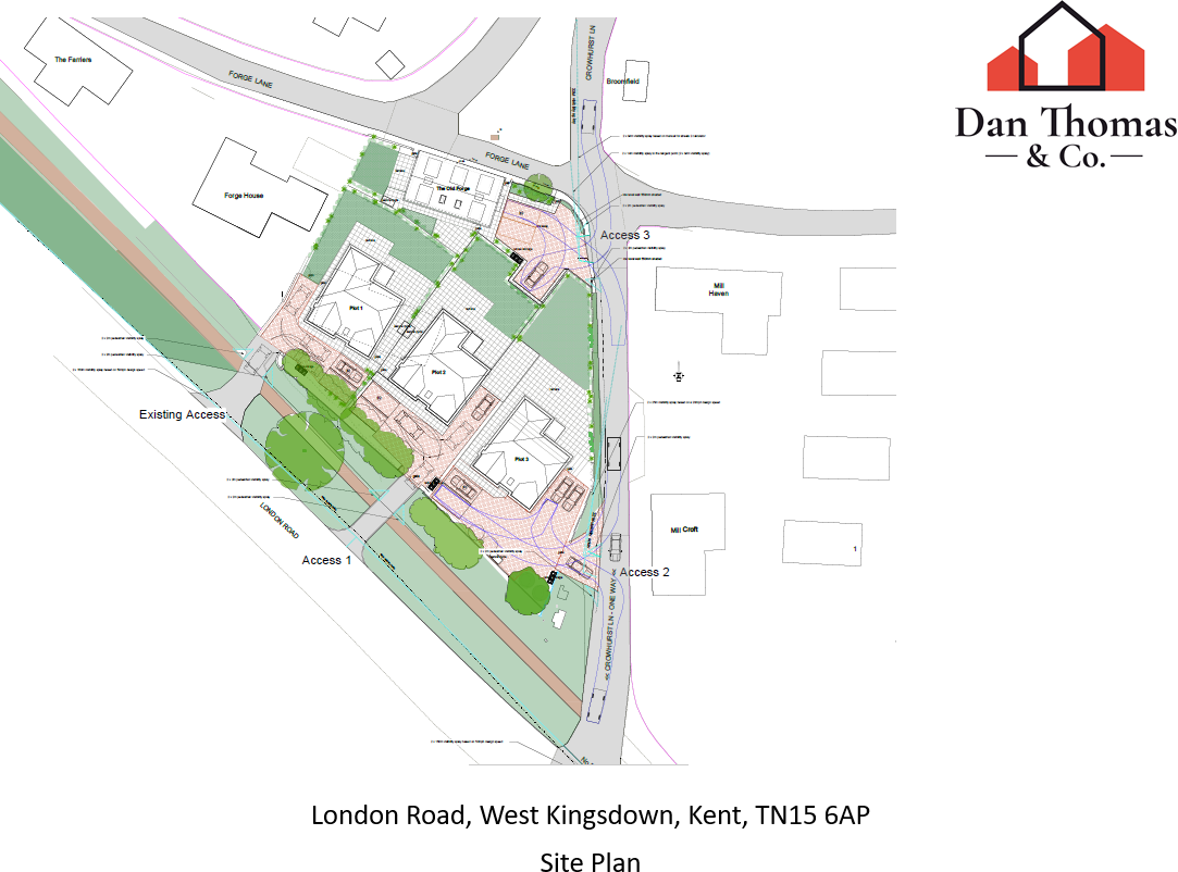 PLANNING GRANTED FOR FOUR DETACHED DWELLINGS A rare opportunity to acquire this substantial development plot, with planning approved for FOUR dwellings - located in West Kingsdown, near Sevenoaks. The seller will also consider splitting the site or a JV arrangement. <...