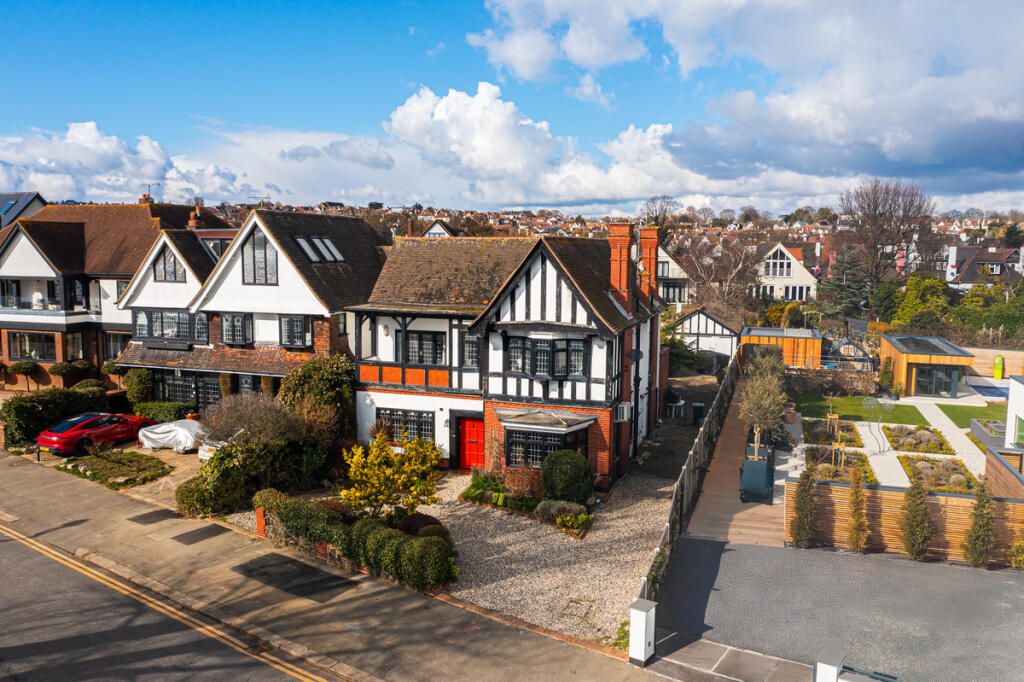 A stunning five-bedroom detached residence with fabulous Estuary views, located in an exclusive part of Chalkwell Esplanade. Featuring spacious living areas, a master bedroom with a balcony, large gardens, off-road parking, and a detached double garage