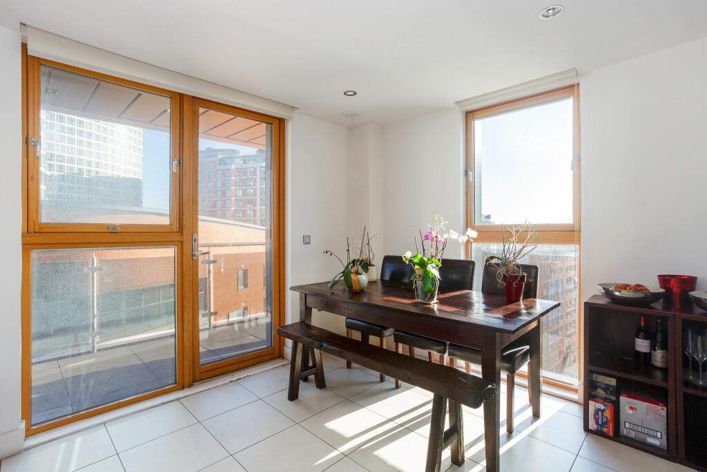 Guide Price £575,000 to £600,000 This rare 11th floor three double bedroom apartment offers bright dual-aspect views towards the River Thames. The spacious open-plan living area includes an eat-in kitchen and access to a full-width private balcony. All three double bedrooms have ample wardrobe s...
