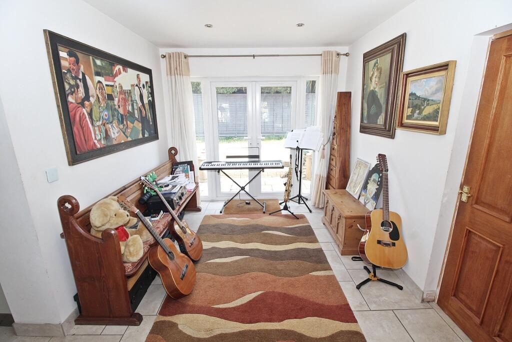 This extended four bedroom detached house enjoys generous and versatile family accommodation and benefits from a main bedroom with walk-in dressing room and en-suite bathroom as well as a secluded rear garden with garage and off road parking.