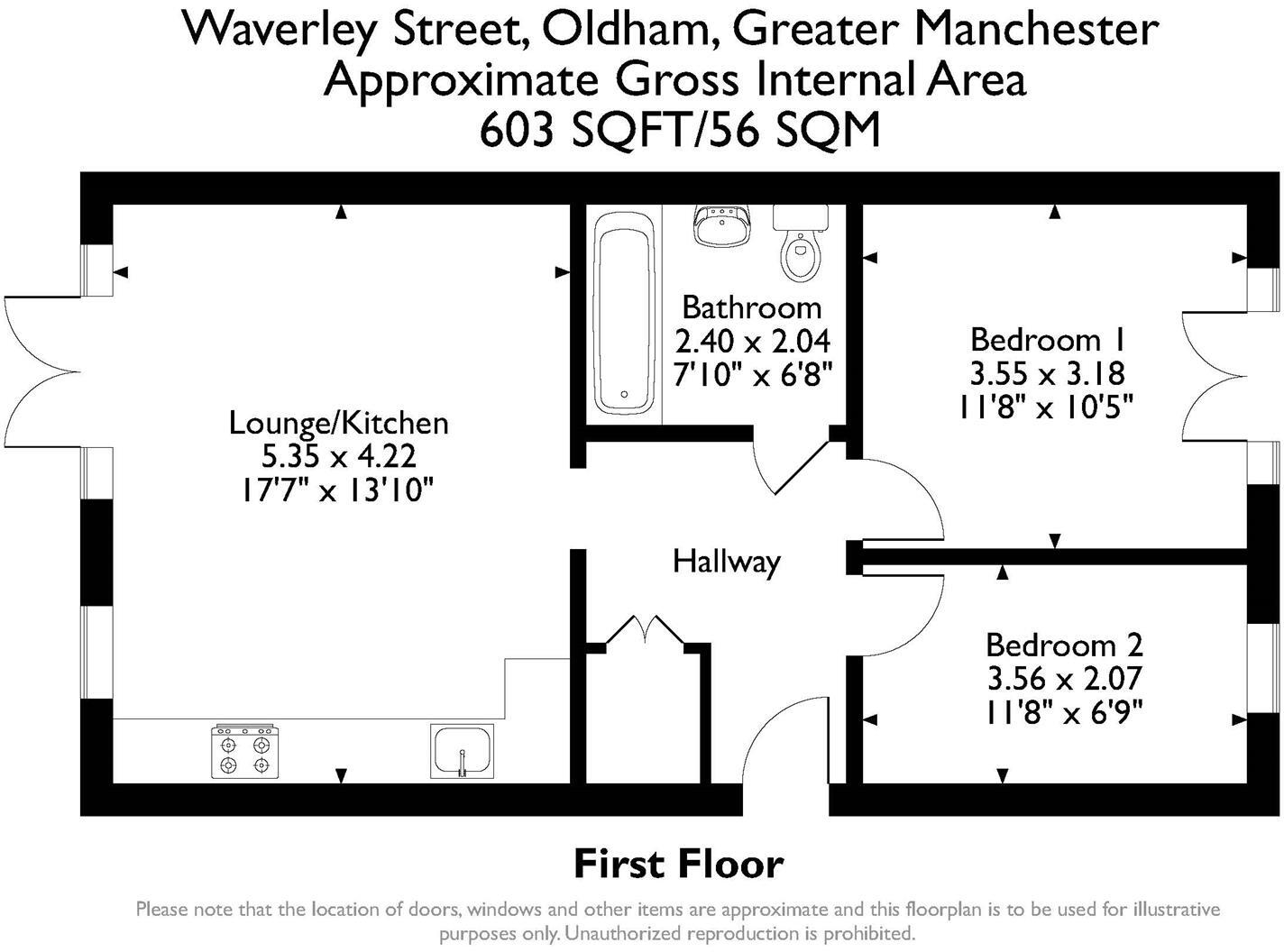 The property is a 2-bedroom apartment located in Oldham, Greater Manchester. It is listed at £80,000 and has a floor area of 520.44 sqft. The plot size is 602.78 sqft. The apartment appears to be in good condition based on the provided images. The interior is modern and well-maintained, with updated fixtures and appliances. There is no visible evidence of damage or neglect. The location is close to several primary schools which received a ‘Good’ Ofsted rating. Transportation links are also reasonably accessible, with several train stations within a reasonable distance. However, more information on the immediate surroundings would be needed to provide a more comprehensive assessment of the location’s desirability. Given the list price of £80,000, the average price in the area is significantly higher at £341,330. The average price per sqft is £421.00, while this property is listed at a much lower price per sqft. However, the lack of sqft information for comparable properties makes a definitive price comparison challenging. The significantly lower price compared to the average for the area could suggest that the property is undervalued, but further investigation into the specifics of the property and the local market is needed to confirm this. The small plot size may also contribute to the lower price.