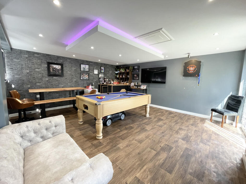 This property is a 4-bedroom, 2-bathroom detached house located in Blackpool, Lancashire. It is situated in the Herons Reach area, which benefits from being close to several good schools (Boundary Primary School, Christ The King Catholic Academy, St Mary’s Catholic Academy, Blackpool Aspire Academy and Highfurlong School, all within a 1.62 KM radius) and has convenient access to several train stations (Layton, Poulton-le-Fylde, Blackpool North, Blackpool South, and Blackpool Pleasure Beach). The property itself is modern and well-maintained, as evidenced by the images. It features a recently updated kitchen and bathrooms, and has a number of additional features including a games room and a well-maintained garden with a hot tub and shed. The plot size is 1,731 sqft. The list price is £374,950. The average house price in the area is £339,216, and the average price per sqft is £312. This property is larger than average (1,467.52 sqft) and appears to be in excellent condition, which justifies the higher-than-average price.