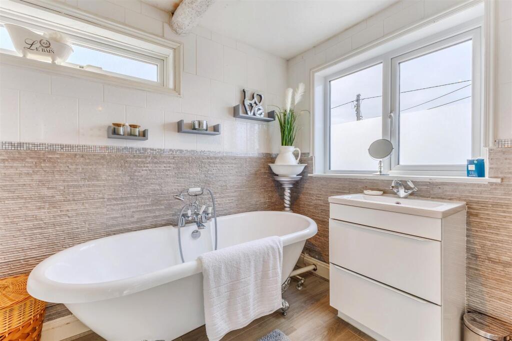 The property appears to be in good condition, having undergone some modernisation, particularly in the kitchen. The images show a modern, well-equipped kitchen and a recently updated bathroom. The interior is presented well and appears clean and well-maintained.