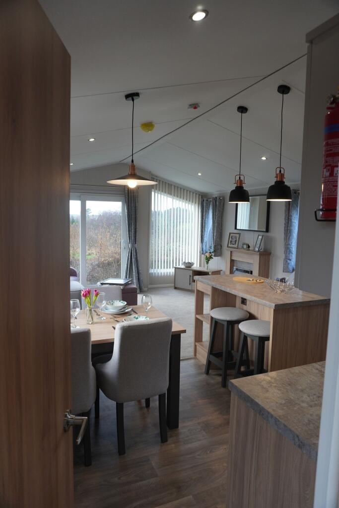 This is a two-bedroom caravan located in Dalton on Tees, North Yorkshire. The interior appears modern and well-maintained. While the immediate area is rural, larger towns and transportation links are within a reasonable distance. The price is significantly lower than average for the area, reflecting the property type. It is listed with Park Move estate agents.