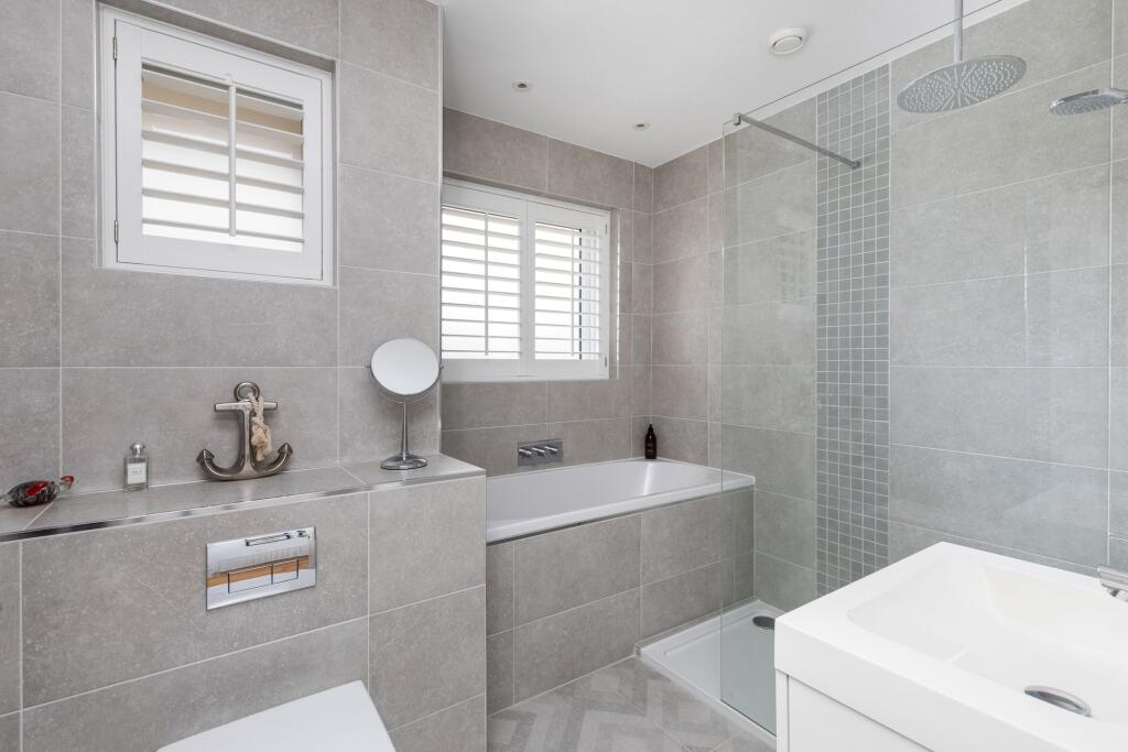 This detached bungalow is located in Rustington East, West Sussex. The property appears to be in good condition, with modern interiors and a well-maintained exterior. It features a good-sized and well-maintained garden with a patio area and mature planting. The property is located within 2km of several schools and Angmering train station is 1.15km away.