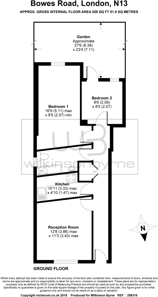 A two bedroom ground floor converted flat for sale with share of freehold.The property benefits from having use of a garden, being double glazed and gas central heated, it also has laminate wood flooring, The property is within half a mile to Bounds Green Tube and Bowes Park railway stations.