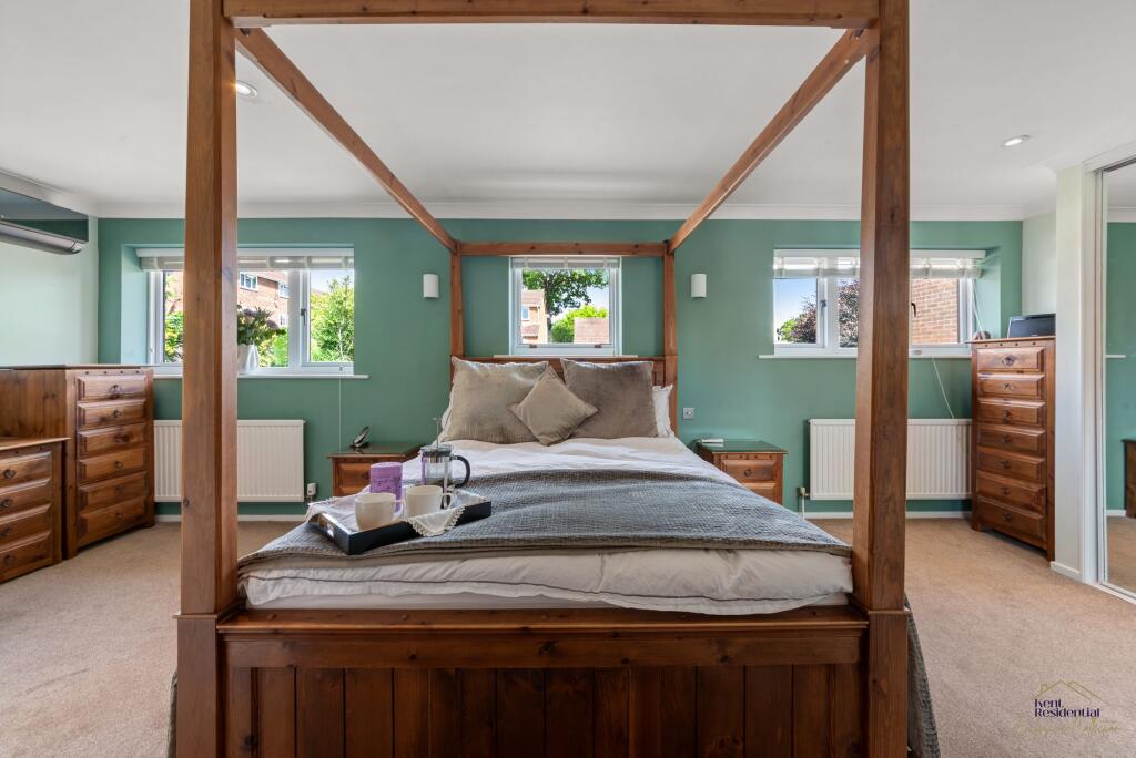 Stylish, Spacious 4 bed detached family home in quiet Rainham cul de sac. Generous living areas, modern kitchen, four double bedrooms, private garden, garage, near schools and amenities. Perfect for growing families.