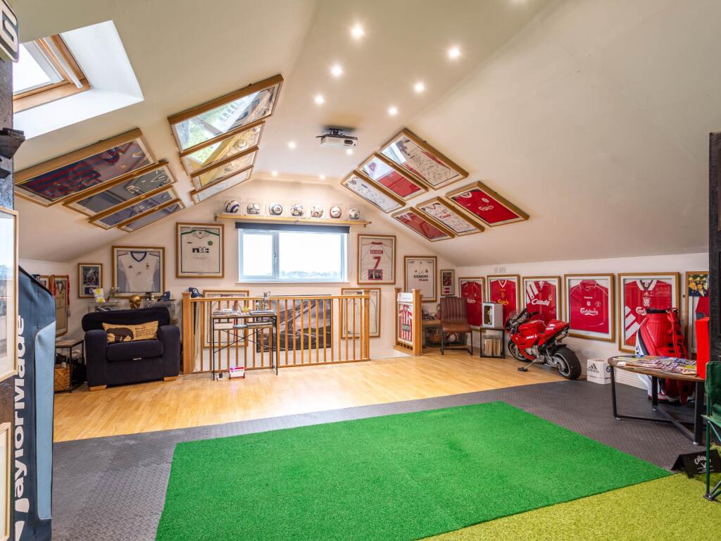 Set on an exclusive private road, Hideaway House is a stunning four-bedroom residence combining elegance, space and privacy. Featuring grand living areas, a cinema room, garden bar & a detached double garage with versatile upper floor, it`s the ultimate modern family retreat.