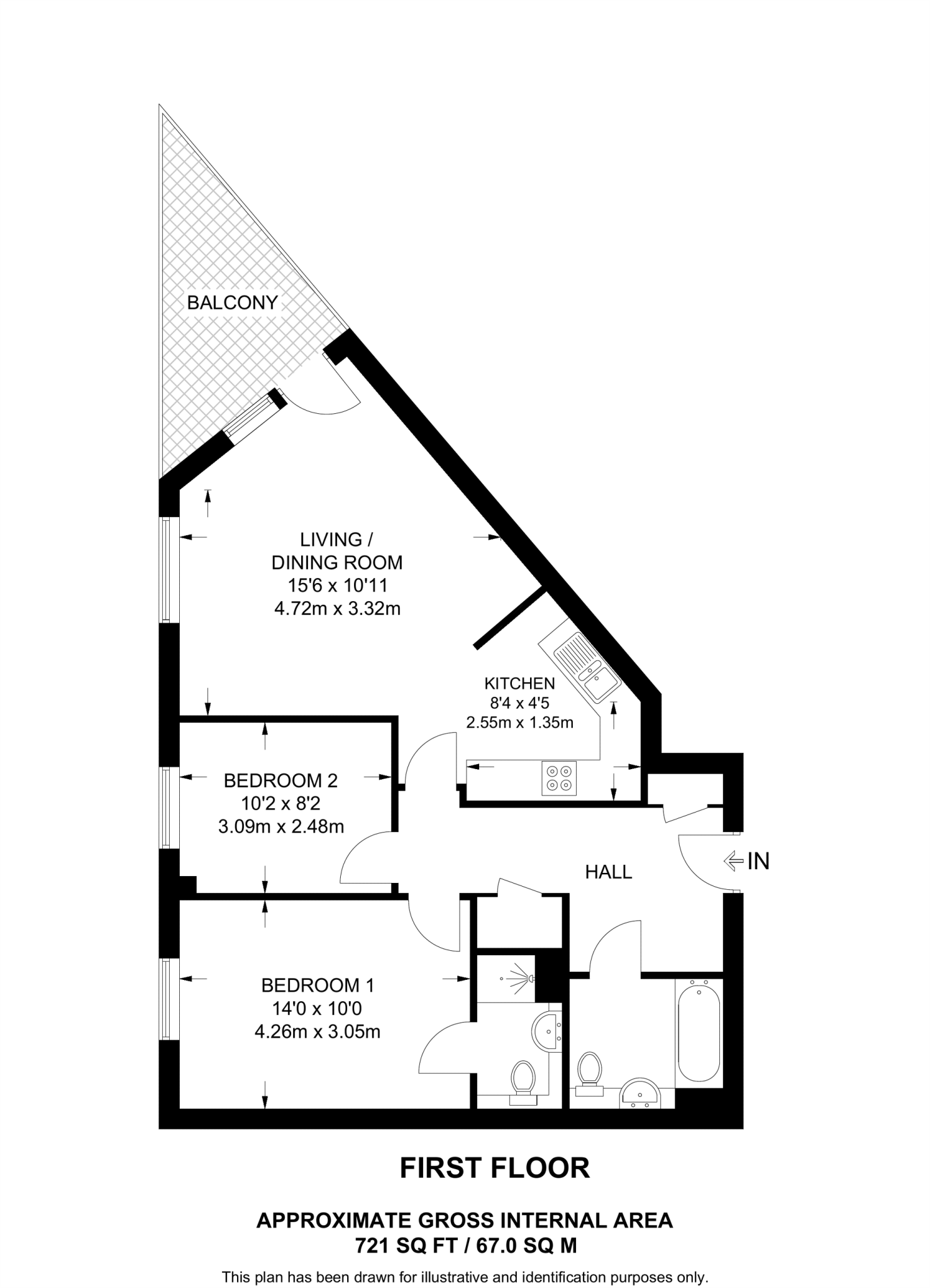 Modern 2 bedroom flat offering bright and spacious interiors, a separate ample kitchen, 2 sleek bathrooms, storage space and a lovely reception room leading to a private balcony.