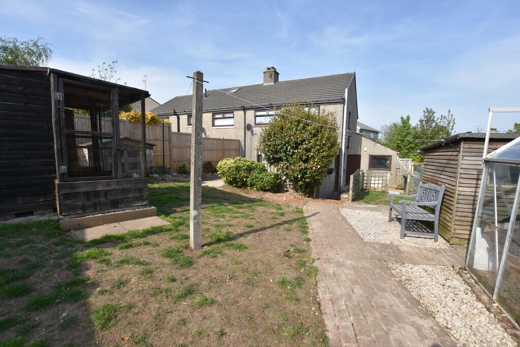This semi-detached property in Ulverston, Cumbria is listed at £210,000. The property has three bedrooms and one bathroom, and is 621.72 square feet. The plot size is 645.83 square feet. The average price for properties in the area is £475,979, with an average price per square foot of £265. Nearby properties range in price from £127,000 to £270,000. The property benefits from being close to several schools, including Croftlands Junior and Infant Schools, Ulverston Victoria High School, St. Mary’s Catholic Primary School, and Sir John Barrow School, all of which received a “Good” Ofsted rating. Ulverston train station is also within reasonable distance. The property appears to be in reasonable condition, although some modernisation may be desired. There is a garden present.