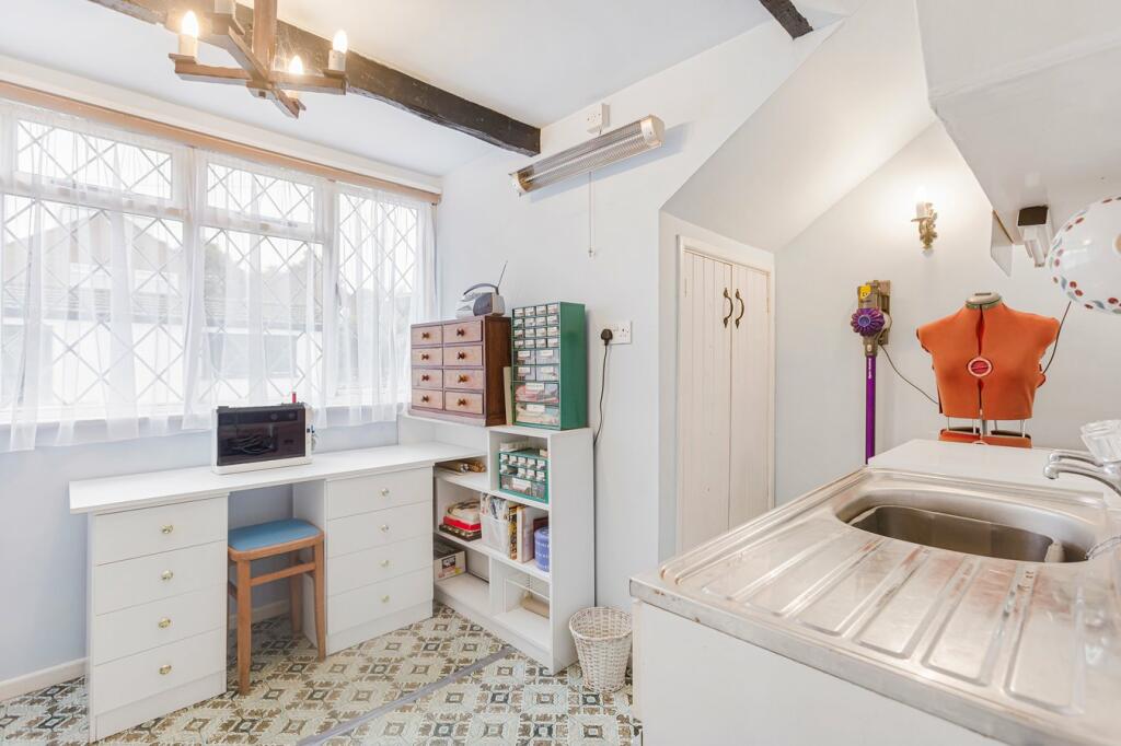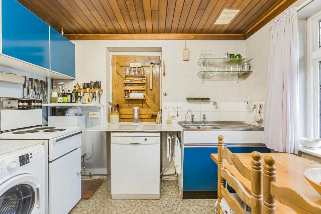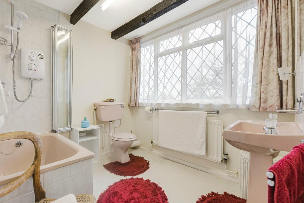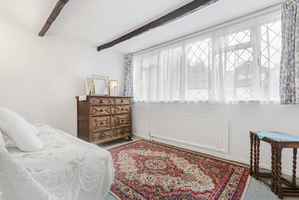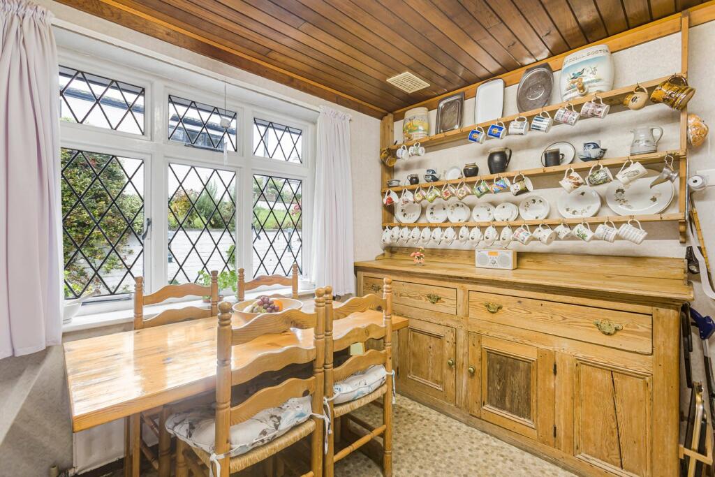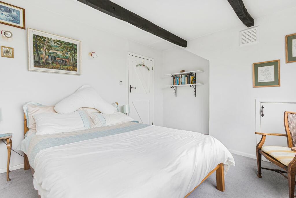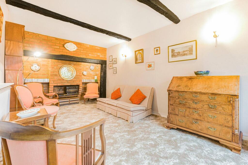 The property itself boasts a charming exterior with a detached garage. Images show a traditional interior that incorporates original features such as exposed beams. However, many aspects, notably the kitchen, bathrooms and some of the decor are in need of modernisation, presenting an opportunity for potential buyers to update and create a space to suit their taste. The house includes a garden, though precise dimensions are unavailable. The current asking price is within the market average for the area but a full survey and valuation would give a better indication. Buyers looking to move straight in will want to factor in significant expenditure to refresh and update the interior of the house. Overall, this is a charming property in a great location that will attract buyers looking for a project to revitalise a character home.