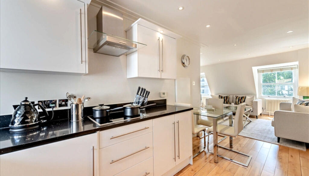 Exclusive Mayfair, W1K, fourth floor flat, situated in a private block features a bespoke kitchen, wooden floors, and just moments from Bond Street, Hyde Park, and renowned cafés—perfect for professionals or a pied-de-terre