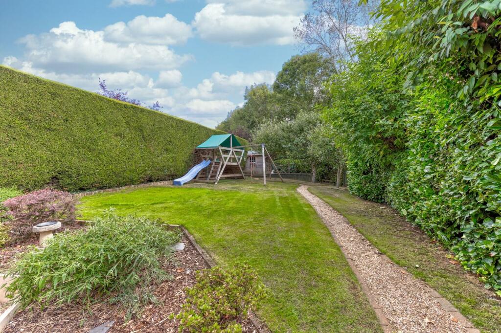 This four-bedroom detached house located in Ambridge Close, East Hunsbury, Northampton, is presented for sale at £550,000. The property boasts a sizable living space at 2072 square feet and is situated in a quiet cul-de-sac with excellent privacy and woodland access. The house includes a double garage and a substantial garden, ideal for families, with a play area already installed. The photos reveal a well-maintained home with a mix of original and some updated features. However, potential buyers may consider modernisation in the kitchen and bathrooms to enhance the property’s overall contemporary appeal. The location offers a blend of suburban tranquility and convenient access to local amenities, good schools, and Northampton town centre via reliable transportation links. While a precise price per square foot isn’t available to provide a detailed analysis of market value, the asking price appears to fall in line with comparable homes in the surrounding area, making it a reasonably priced option for prospective purchasers seeking a family home in a desirable suburb. The generous garden and privacy provided are strong selling points. A property survey and thorough examination of comparable recently sold properties would be essential for a prospective buyer to make an informed decision regarding the purchase.
