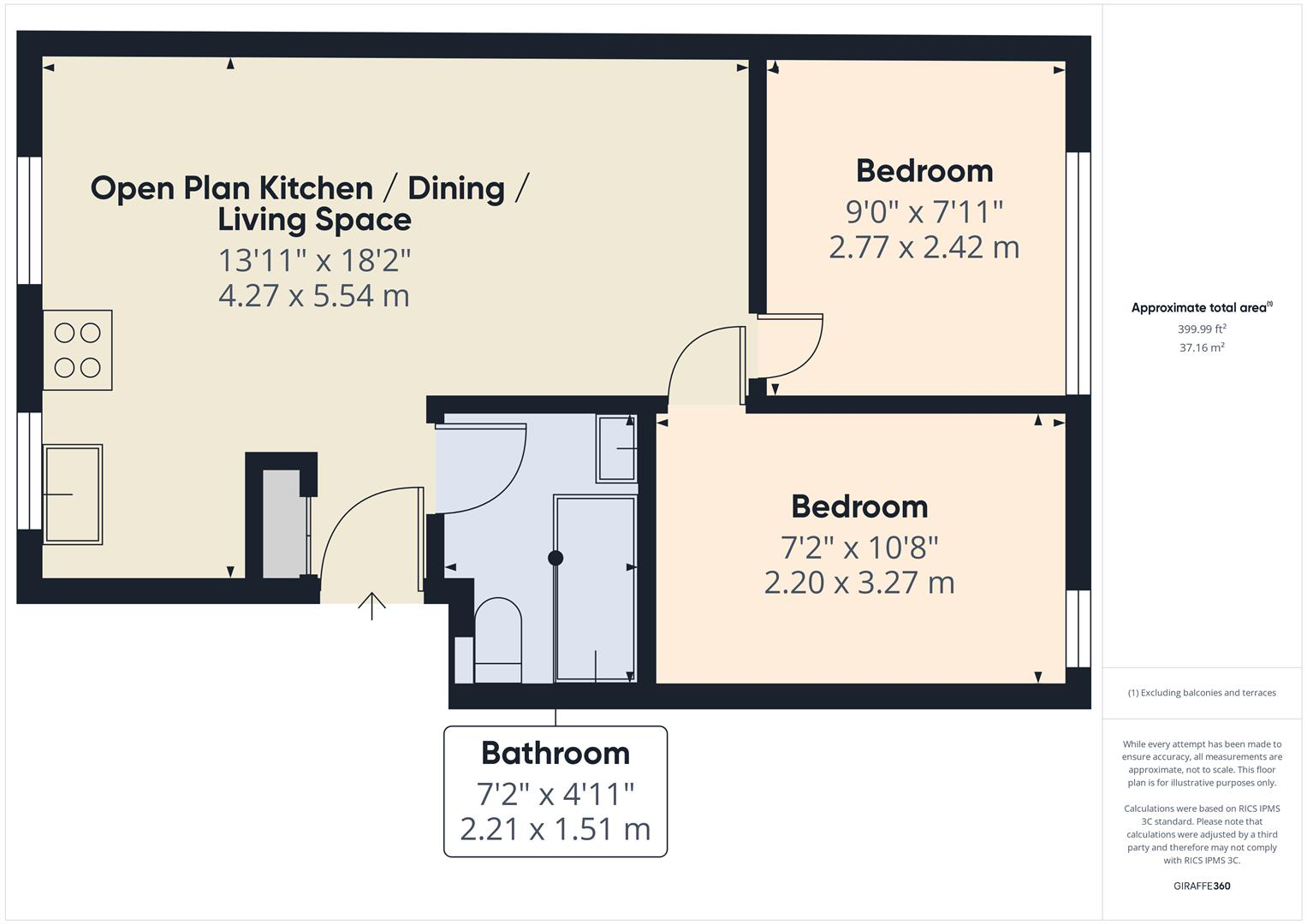 This property is a 2-bedroom flat located in Kilburn, Camden, with a list price of £385,000. The flat is 399.99 sqft and is situated in a period property conversion. The location benefits from being close to Kilburn High Road and several transport links, as well as a number of schools with varying Ofsted ratings. The average property price in the area is considerably higher than the list price of this property, at £724,034. However, the average sqft price is £856, which is higher than the price per sqft of this property. The flat appears to be in good condition and benefits from a modern kitchen and bathroom. There is no mention of outdoor space.